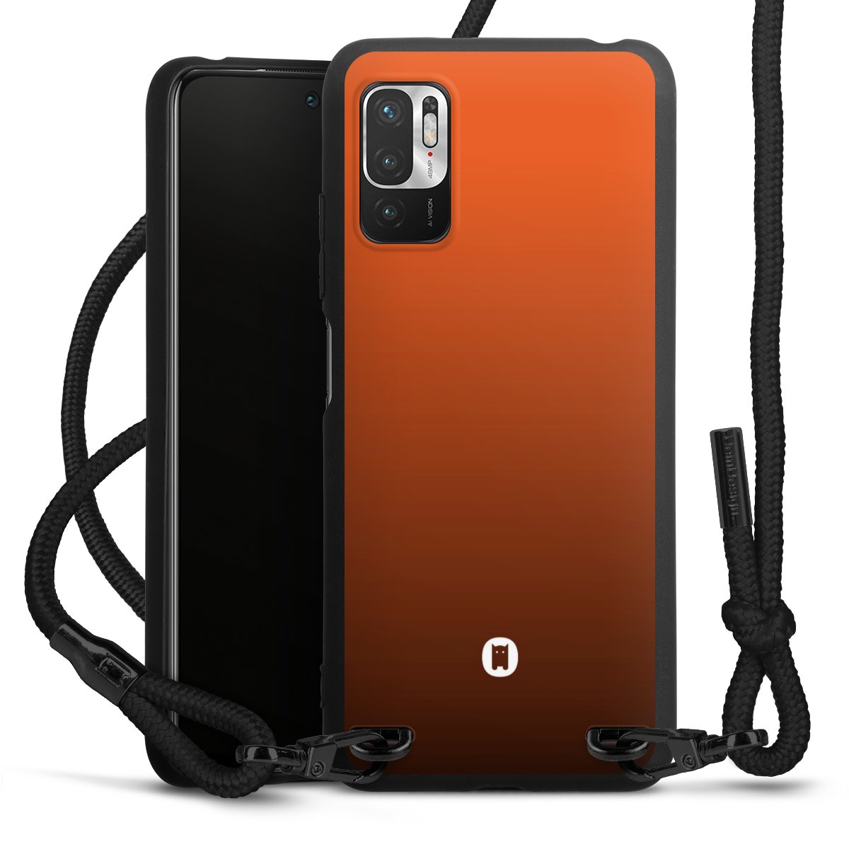 The matt black silicone case is made of flexible TPU (thermoplastic polyurethane) and offers robust protection. The durable, unbreakable material makes the cover flexible and dimensionally stable at the same time. The matte surface makes your design stand out more and is less susceptible to fingerprints and dirt. The stylish trend accessory fits comfortably in the hand and is perfectly complemented by the fabric (polyester) mobile phone strap. The braided fabric strap is approx. 1.70 metres long with a diameter of approx. 0.5 cm. Due to the special knotting technique, the length of the strap can be adjusted by simply pulling it, so that you can adapt it individually to your wishes. The practical case to wear around your neck is available with the fabric strap in black. As a little icing on the cake, we have provided the strap with a chic metal fastener in matt black. The strap is securely fastened to the case with loops made of high-quality genuine leather and press studs. The ends of the fabric strap are covered with metallic end caps and thus protected from fraying.