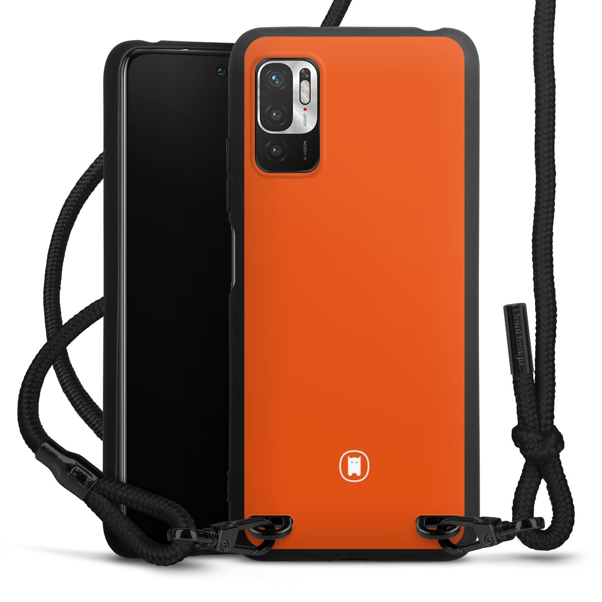 The matt black silicone case is made of flexible TPU (thermoplastic polyurethane) and offers robust protection. The durable, unbreakable material makes the cover flexible and dimensionally stable at the same time. The matte surface makes your design stand out more and is less susceptible to fingerprints and dirt. The stylish trend accessory fits comfortably in the hand and is perfectly complemented by the fabric (polyester) mobile phone strap. The braided fabric strap is approx. 1.70 metres long with a diameter of approx. 0.5 cm. Due to the special knotting technique, the length of the strap can be adjusted by simply pulling it, so that you can adapt it individually to your wishes. The practical case to wear around your neck is available with the fabric strap in black. As a little icing on the cake, we have provided the strap with a chic metal fastener in matt black. The strap is securely fastened to the case with loops made of high-quality genuine leather and press studs. The ends of the fabric strap are covered with metallic end caps and thus protected from fraying.