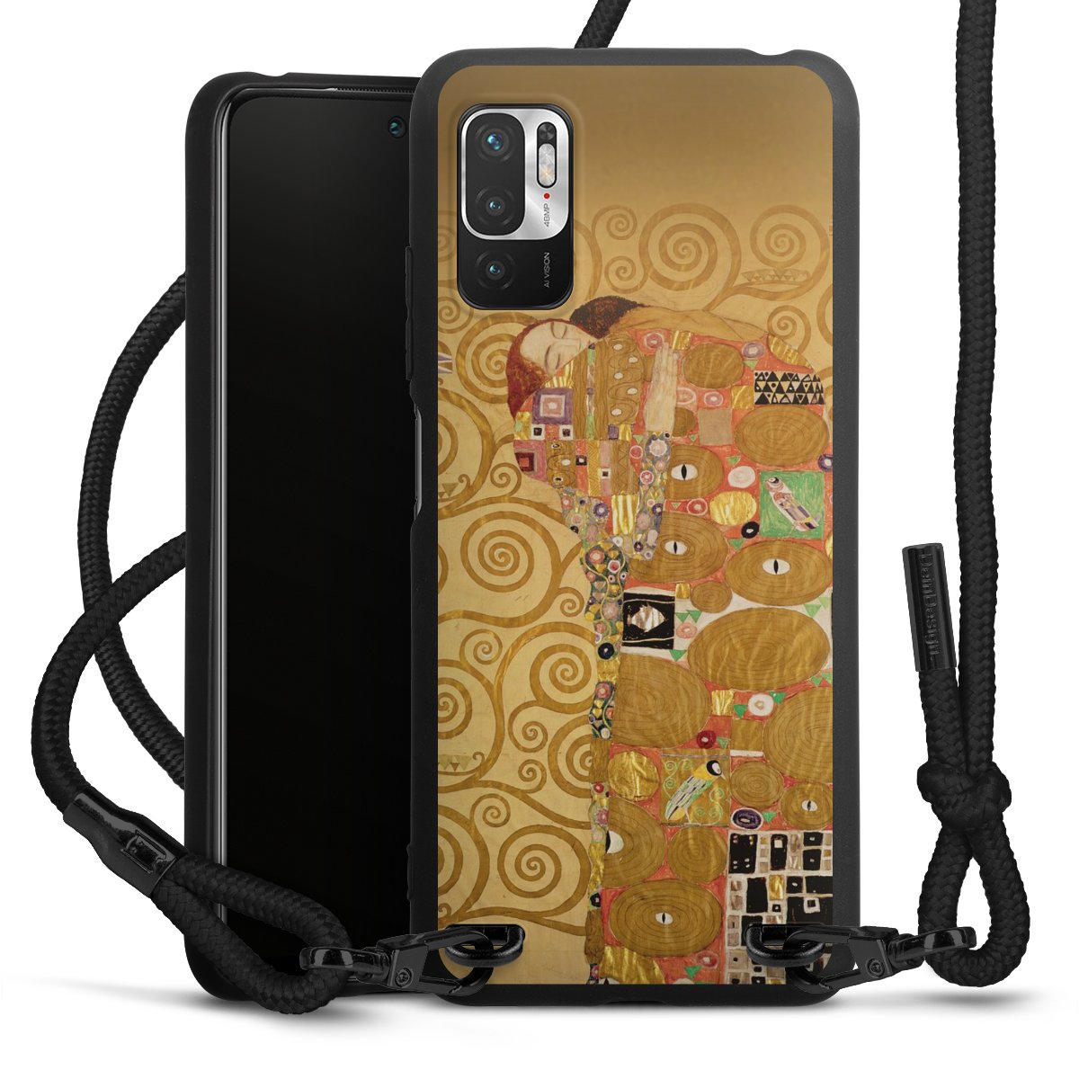 The matt black silicone case is made of flexible TPU (thermoplastic polyurethane) and offers robust protection. The durable, unbreakable material makes the cover flexible and dimensionally stable at the same time. The matte surface makes your design stand out more and is less susceptible to fingerprints and dirt. The stylish trend accessory fits comfortably in the hand and is perfectly complemented by the fabric (polyester) mobile phone strap. The braided fabric strap is approx. 1.70 metres long with a diameter of approx. 0.5 cm. Due to the special knotting technique, the length of the strap can be adjusted by simply pulling it, so that you can adapt it individually to your wishes. The practical case to wear around your neck is available with the fabric strap in black. As a little icing on the cake, we have provided the strap with a chic metal fastener in matt black. The strap is securely fastened to the case with loops made of high-quality genuine leather and press studs. The ends of the fabric strap are covered with metallic end caps and thus protected from fraying.