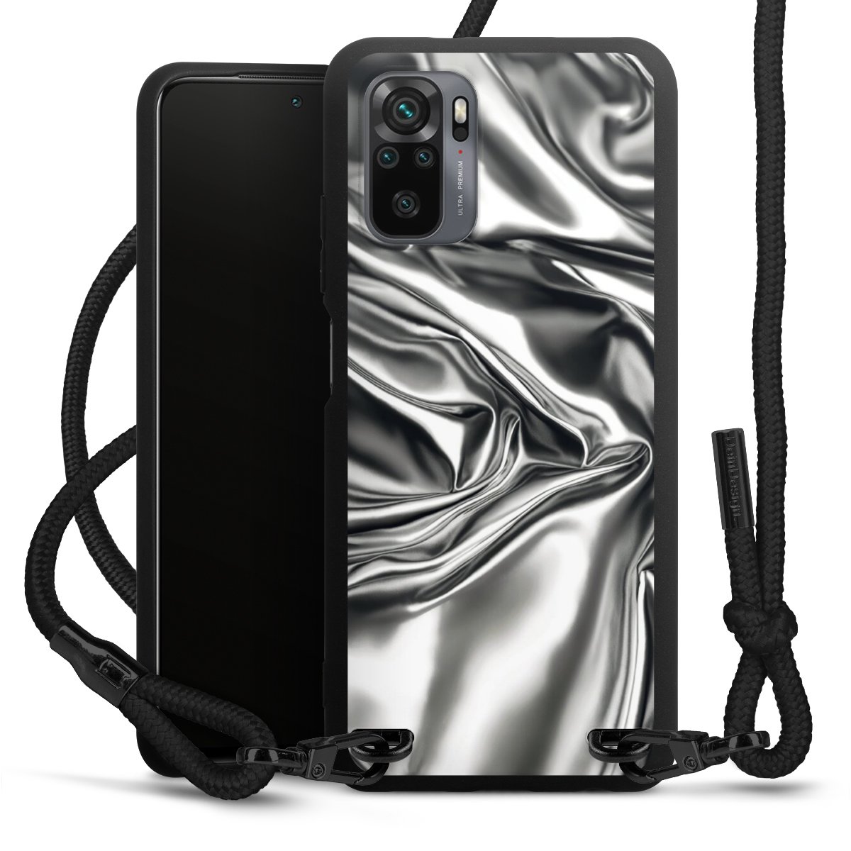 The matt black silicone case is made of flexible TPU (thermoplastic polyurethane) and offers robust protection. The durable, unbreakable material makes the cover flexible and dimensionally stable at the same time. The matte surface makes your design stand out more and is less susceptible to fingerprints and dirt. The stylish trend accessory fits comfortably in the hand and is perfectly complemented by the fabric (polyester) mobile phone strap. The braided fabric strap is approx. 1.70 metres long with a diameter of approx. 0.5 cm. Due to the special knotting technique, the length of the strap can be adjusted by simply pulling it, so that you can adapt it individually to your wishes. The practical case to wear around your neck is available with the fabric strap in black. As a little icing on the cake, we have provided the strap with a chic metal fastener in matt black. The strap is securely fastened to the case with loops made of high-quality genuine leather and press studs. The ends of the fabric strap are covered with metallic end caps and thus protected from fraying.