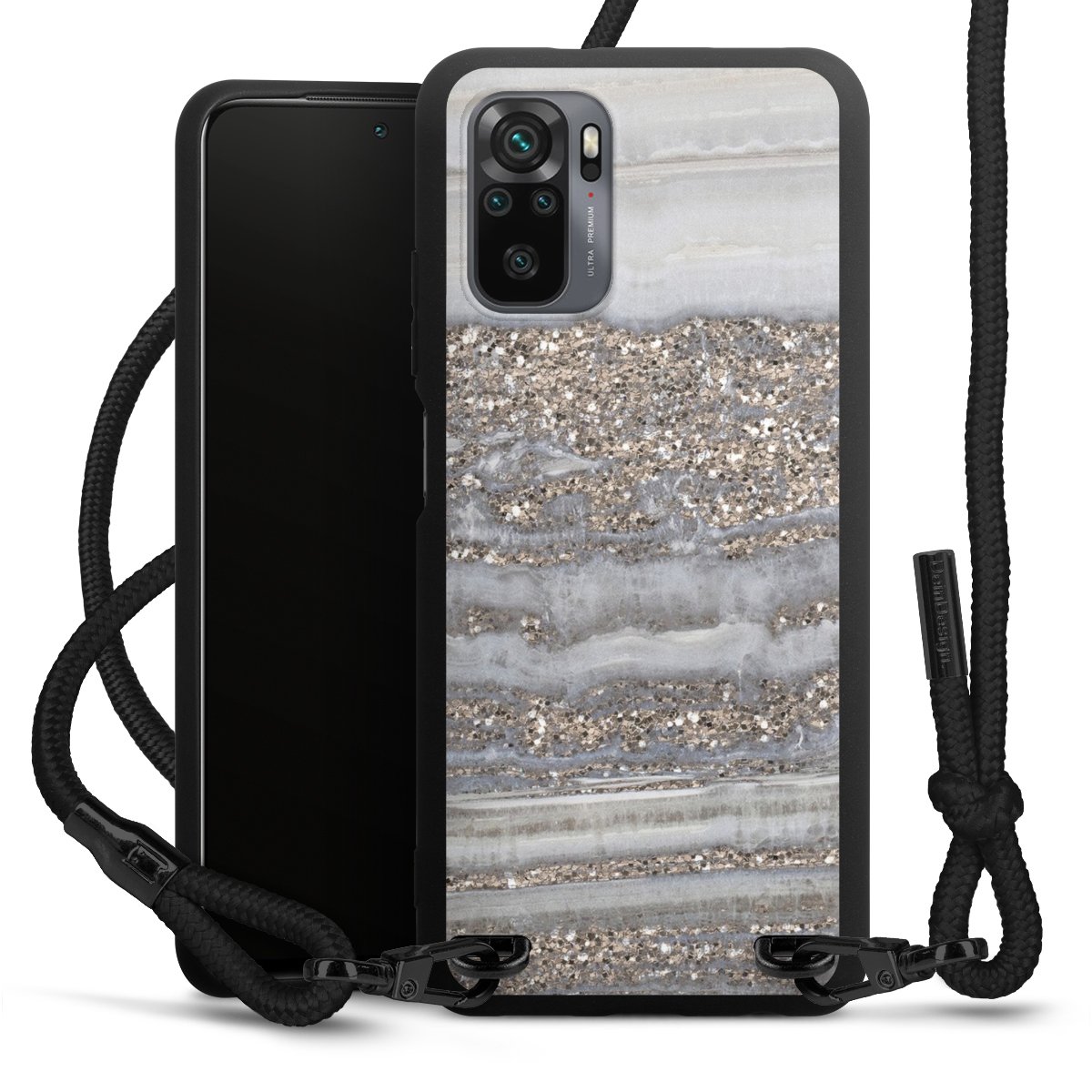 The matt black silicone case is made of flexible TPU (thermoplastic polyurethane) and offers robust protection. The durable, unbreakable material makes the cover flexible and dimensionally stable at the same time. The matte surface makes your design stand out more and is less susceptible to fingerprints and dirt. The stylish trend accessory fits comfortably in the hand and is perfectly complemented by the fabric (polyester) mobile phone strap. The braided fabric strap is approx. 1.70 metres long with a diameter of approx. 0.5 cm. Due to the special knotting technique, the length of the strap can be adjusted by simply pulling it, so that you can adapt it individually to your wishes. The practical case to wear around your neck is available with the fabric strap in black. As a little icing on the cake, we have provided the strap with a chic metal fastener in matt black. The strap is securely fastened to the case with loops made of high-quality genuine leather and press studs. The ends of the fabric strap are covered with metallic end caps and thus protected from fraying.