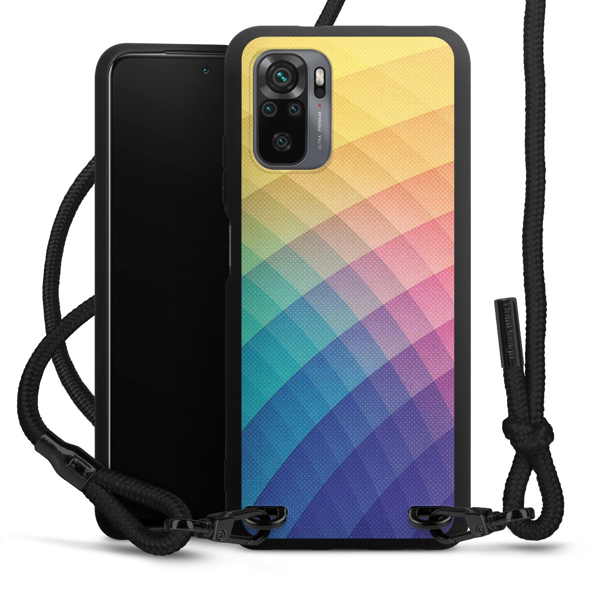 We use the solid direct print process for this phone case, which is why the print area only covers the back and the edge remains unprinted. The case to wear around your neck can be ordered unprinted, fully printed, or partially printed. For your design, either choose one of our exclusive shop motifs or get creative and create your own design, for example with photos and overlays. Design your own personal trend accessory and make an individual statement on the streets!
