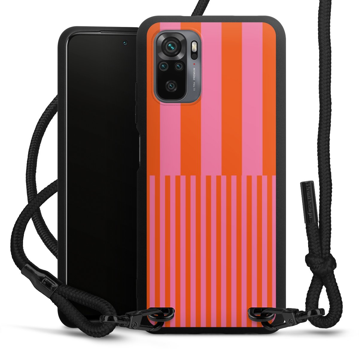 We use the solid direct print process for this phone case, which is why the print area only covers the back and the edge remains unprinted. The case to wear around your neck can be ordered unprinted, fully printed, or partially printed. For your design, either choose one of our exclusive shop motifs or get creative and create your own design, for example with photos and overlays. Design your own personal trend accessory and make an individual statement on the streets!