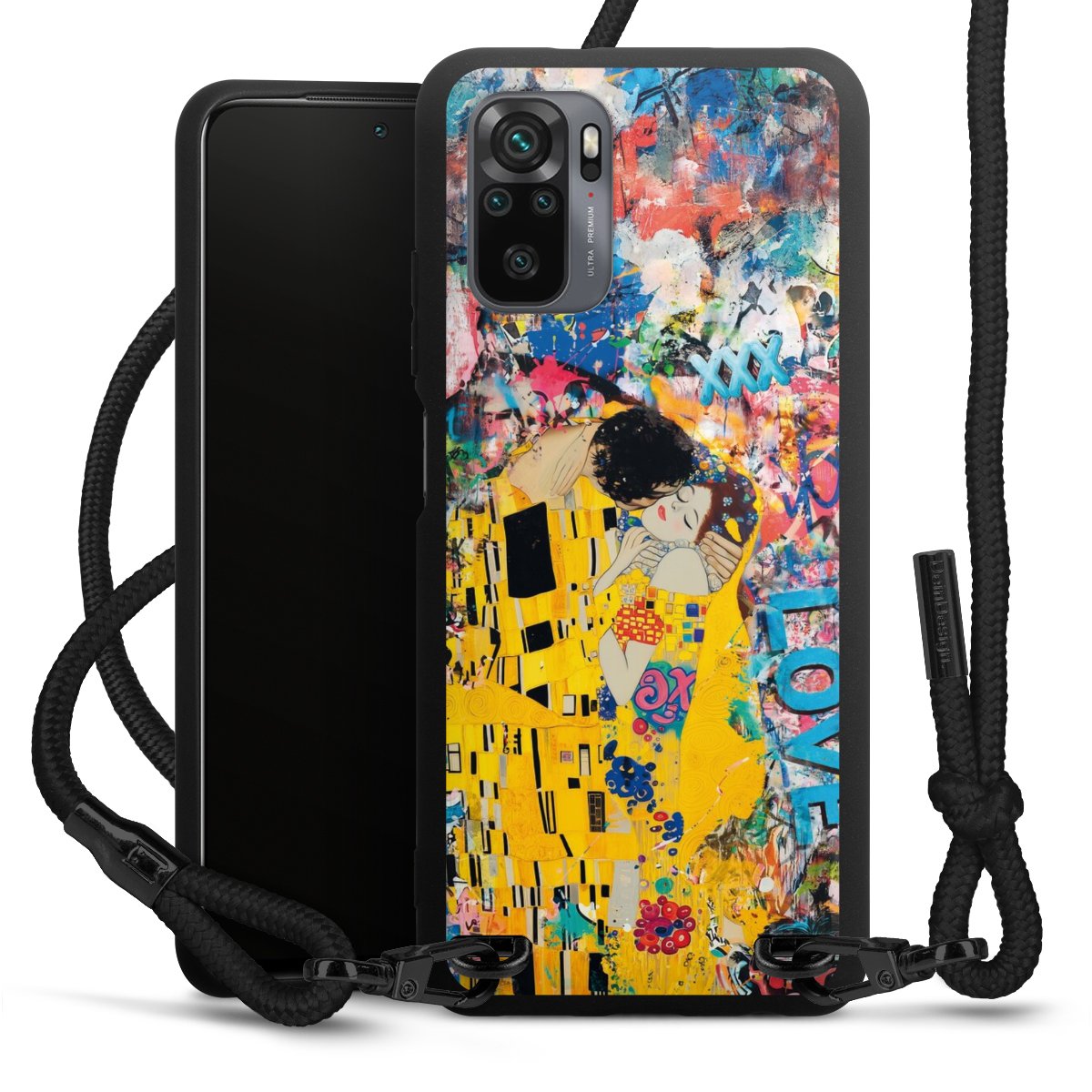 We use the solid direct print process for this phone case, which is why the print area only covers the back and the edge remains unprinted. The case to wear around your neck can be ordered unprinted, fully printed, or partially printed. For your design, either choose one of our exclusive shop motifs or get creative and create your own design, for example with photos and overlays. Design your own personal trend accessory and make an individual statement on the streets!