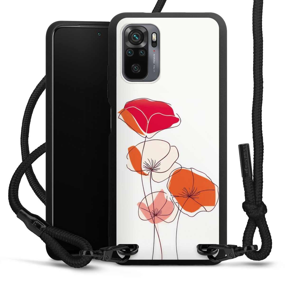 We use the solid direct print process for this phone case, which is why the print area only covers the back and the edge remains unprinted. The case to wear around your neck can be ordered unprinted, fully printed, or partially printed. For your design, either choose one of our exclusive shop motifs or get creative and create your own design, for example with photos and overlays. Design your own personal trend accessory and make an individual statement on the streets!