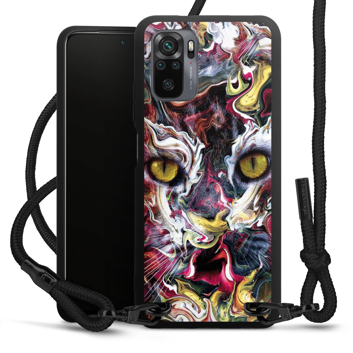 The matt black silicone case is made of flexible TPU (thermoplastic polyurethane) and offers robust protection. The durable, unbreakable material makes the cover flexible and dimensionally stable at the same time. The matte surface makes your design stand out more and is less susceptible to fingerprints and dirt. The stylish trend accessory fits comfortably in the hand and is perfectly complemented by the fabric (polyester) mobile phone strap. The braided fabric strap is approx. 1.70 metres long with a diameter of approx. 0.5 cm. Due to the special knotting technique, the length of the strap can be adjusted by simply pulling it, so that you can adapt it individually to your wishes. The practical case to wear around your neck is available with the fabric strap in black. As a little icing on the cake, we have provided the strap with a chic metal fastener in matt black. The strap is securely fastened to the case with loops made of high-quality genuine leather and press studs. The ends of the fabric strap are covered with metallic end caps and thus protected from fraying.