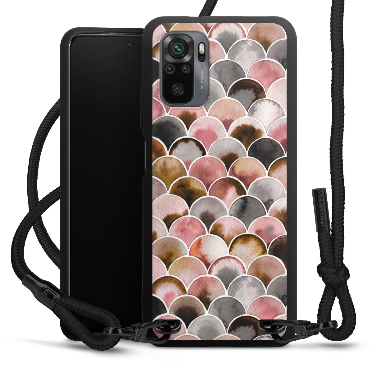 The matt black silicone case is made of flexible TPU (thermoplastic polyurethane) and offers robust protection. The durable, unbreakable material makes the cover flexible and dimensionally stable at the same time. The matte surface makes your design stand out more and is less susceptible to fingerprints and dirt. The stylish trend accessory fits comfortably in the hand and is perfectly complemented by the fabric (polyester) mobile phone strap. The braided fabric strap is approx. 1.70 metres long with a diameter of approx. 0.5 cm. Due to the special knotting technique, the length of the strap can be adjusted by simply pulling it, so that you can adapt it individually to your wishes. The practical case to wear around your neck is available with the fabric strap in black. As a little icing on the cake, we have provided the strap with a chic metal fastener in matt black. The strap is securely fastened to the case with loops made of high-quality genuine leather and press studs. The ends of the fabric strap are covered with metallic end caps and thus protected from fraying.