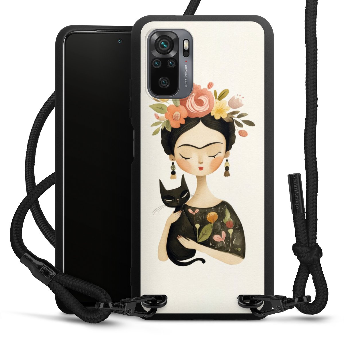 The matt black silicone case is made of flexible TPU (thermoplastic polyurethane) and offers robust protection. The durable, unbreakable material makes the cover flexible and dimensionally stable at the same time. The matte surface makes your design stand out more and is less susceptible to fingerprints and dirt. The stylish trend accessory fits comfortably in the hand and is perfectly complemented by the fabric (polyester) mobile phone strap. The braided fabric strap is approx. 1.70 metres long with a diameter of approx. 0.5 cm. Due to the special knotting technique, the length of the strap can be adjusted by simply pulling it, so that you can adapt it individually to your wishes. The practical case to wear around your neck is available with the fabric strap in black. As a little icing on the cake, we have provided the strap with a chic metal fastener in matt black. The strap is securely fastened to the case with loops made of high-quality genuine leather and press studs. The ends of the fabric strap are covered with metallic end caps and thus protected from fraying.