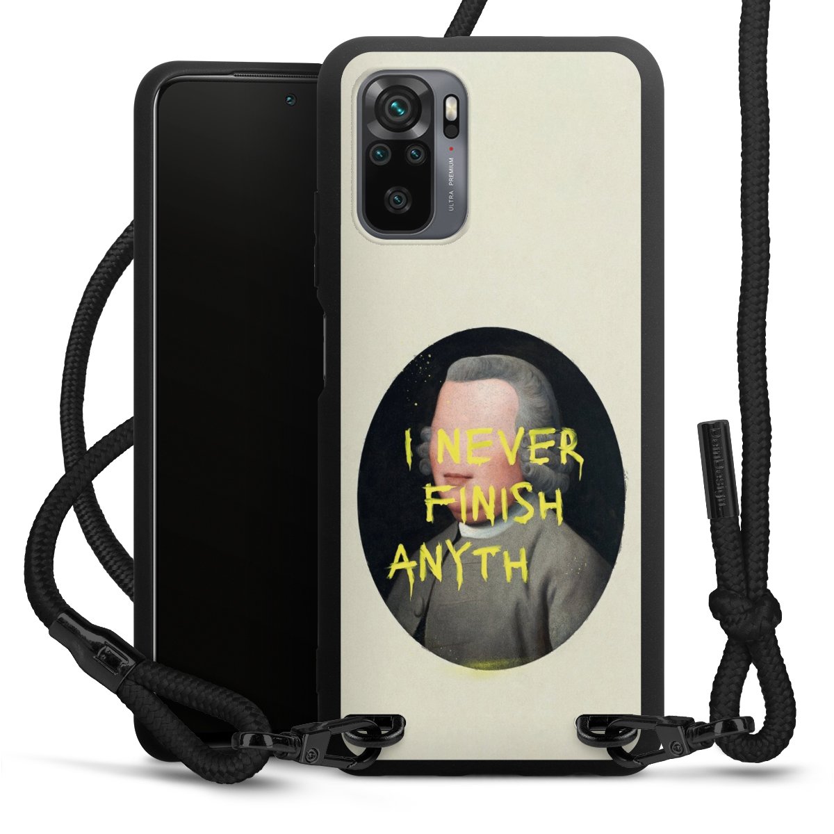 The matt black silicone case is made of flexible TPU (thermoplastic polyurethane) and offers robust protection. The durable, unbreakable material makes the cover flexible and dimensionally stable at the same time. The matte surface makes your design stand out more and is less susceptible to fingerprints and dirt. The stylish trend accessory fits comfortably in the hand and is perfectly complemented by the fabric (polyester) mobile phone strap. The braided fabric strap is approx. 1.70 metres long with a diameter of approx. 0.5 cm. Due to the special knotting technique, the length of the strap can be adjusted by simply pulling it, so that you can adapt it individually to your wishes. The practical case to wear around your neck is available with the fabric strap in black. As a little icing on the cake, we have provided the strap with a chic metal fastener in matt black. The strap is securely fastened to the case with loops made of high-quality genuine leather and press studs. The ends of the fabric strap are covered with metallic end caps and thus protected from fraying.