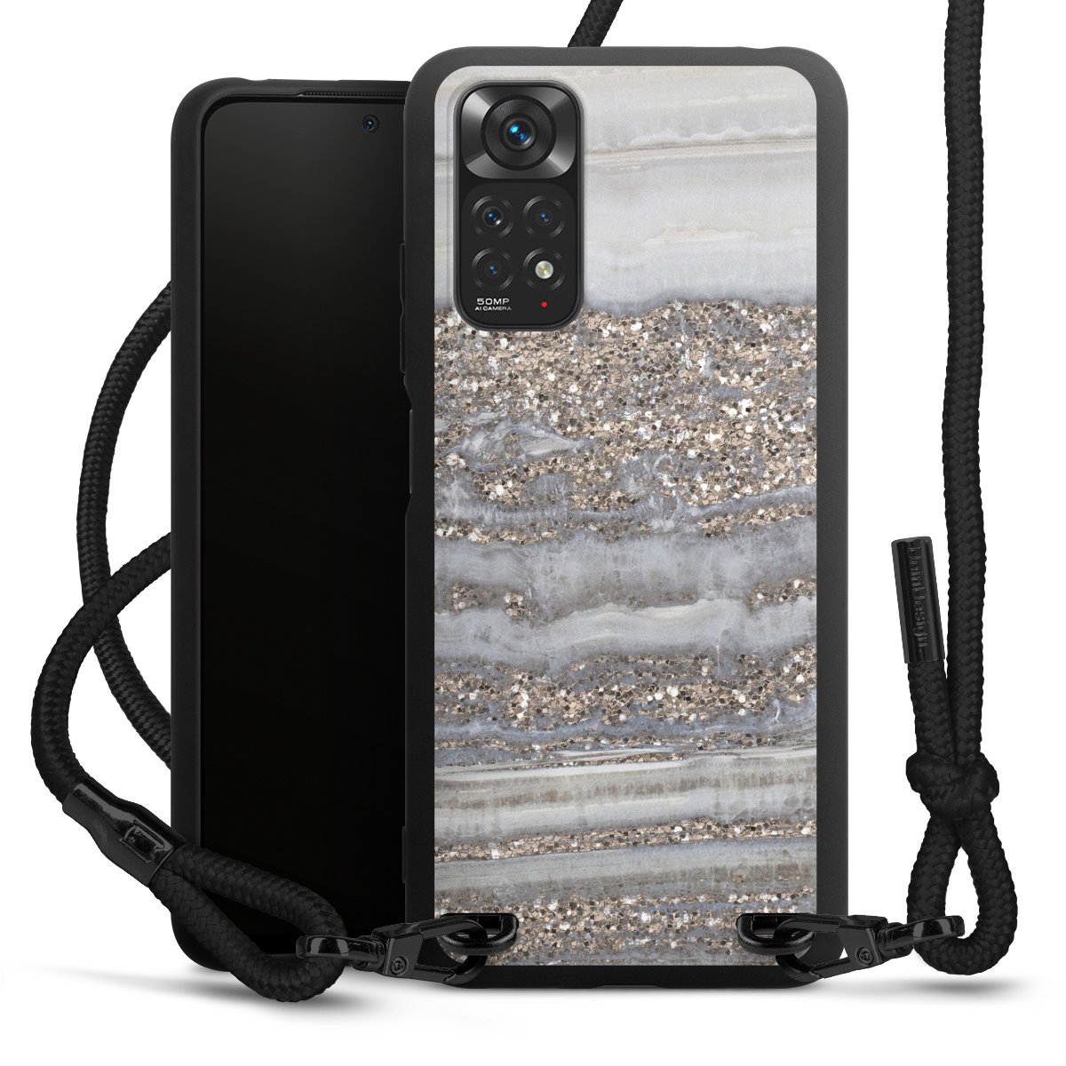 Pure Black: Phone case, fabric strap and metal details in stylish matt black.