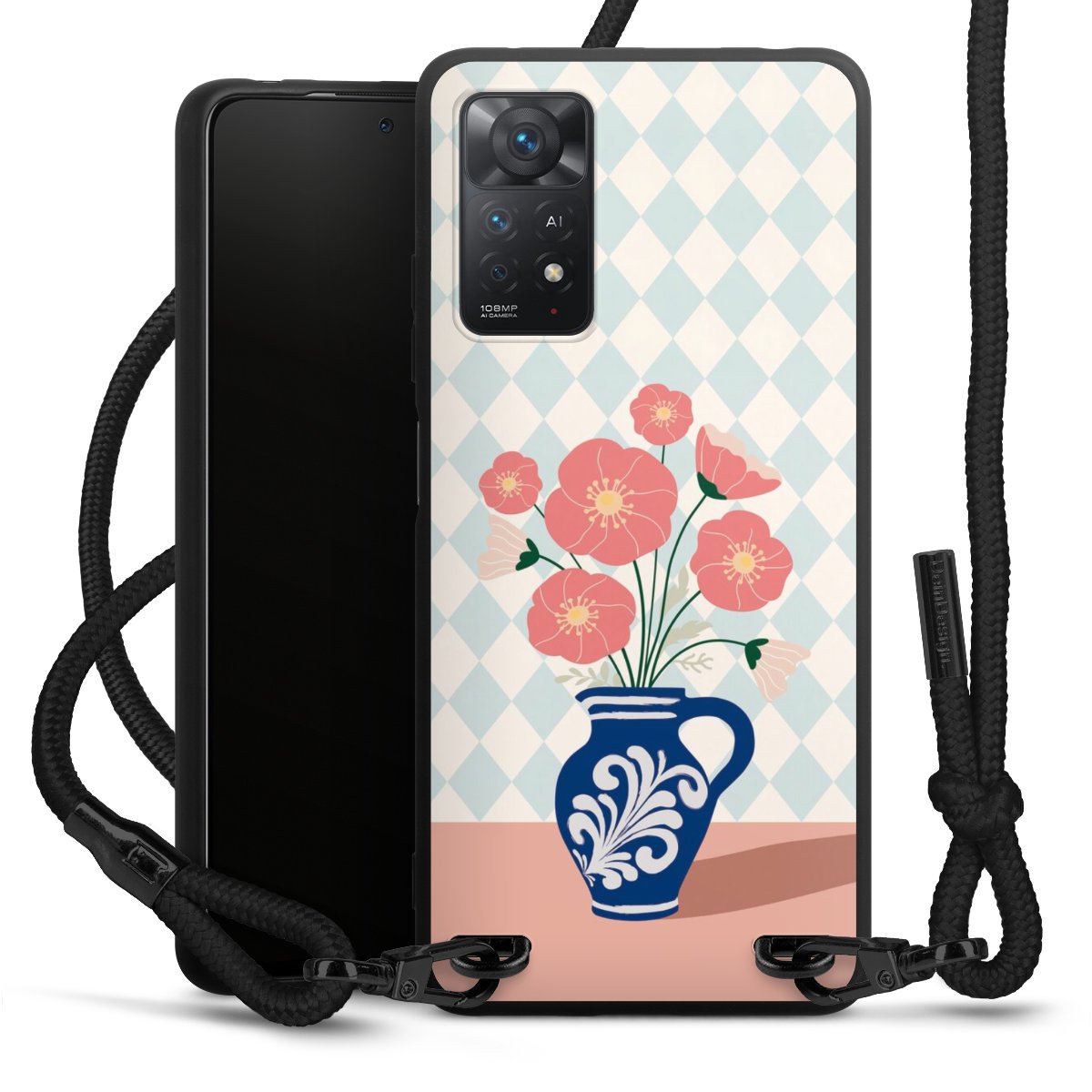 The matt black silicone case is made of flexible TPU (thermoplastic polyurethane) and offers robust protection. The durable, unbreakable material makes the cover flexible and dimensionally stable at the same time. The matte surface makes your design stand out more and is less susceptible to fingerprints and dirt. The stylish trend accessory fits comfortably in the hand and is perfectly complemented by the fabric (polyester) mobile phone strap. The braided fabric strap is approx. 1.70 metres long with a diameter of approx. 0.5 cm. Due to the special knotting technique, the length of the strap can be adjusted by simply pulling it, so that you can adapt it individually to your wishes. The practical case to wear around your neck is available with the fabric strap in black. As a little icing on the cake, we have provided the strap with a chic metal fastener in matt black. The strap is securely fastened to the case with loops made of high-quality genuine leather and press studs. The ends of the fabric strap are covered with metallic end caps and thus protected from fraying.