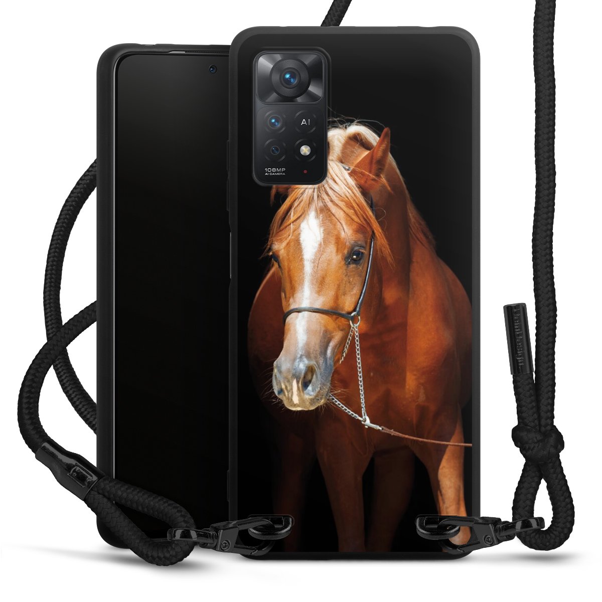 The matt black silicone case is made of flexible TPU (thermoplastic polyurethane) and offers robust protection. The durable, unbreakable material makes the cover flexible and dimensionally stable at the same time. The matte surface makes your design stand out more and is less susceptible to fingerprints and dirt. The stylish trend accessory fits comfortably in the hand and is perfectly complemented by the fabric (polyester) mobile phone strap. The braided fabric strap is approx. 1.70 metres long with a diameter of approx. 0.5 cm. Due to the special knotting technique, the length of the strap can be adjusted by simply pulling it, so that you can adapt it individually to your wishes. The practical case to wear around your neck is available with the fabric strap in black. As a little icing on the cake, we have provided the strap with a chic metal fastener in matt black. The strap is securely fastened to the case with loops made of high-quality genuine leather and press studs. The ends of the fabric strap are covered with metallic end caps and thus protected from fraying.
