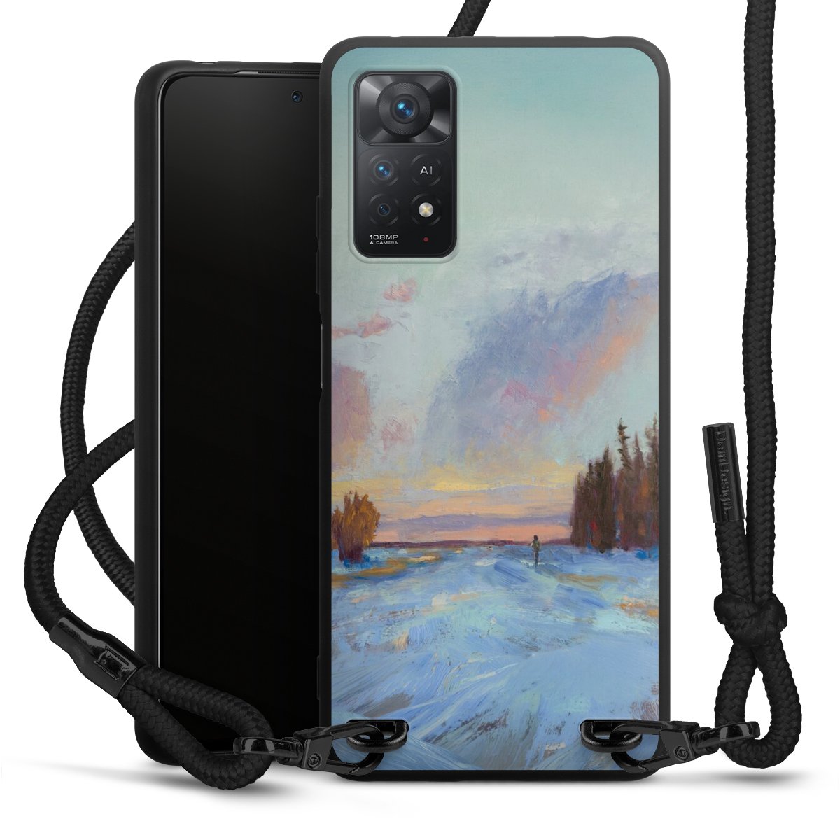 We use the solid direct print process for this phone case, which is why the print area only covers the back and the edge remains unprinted. The case to wear around your neck can be ordered unprinted, fully printed, or partially printed. For your design, either choose one of our exclusive shop motifs or get creative and create your own design, for example with photos and overlays. Design your own personal trend accessory and make an individual statement on the streets!