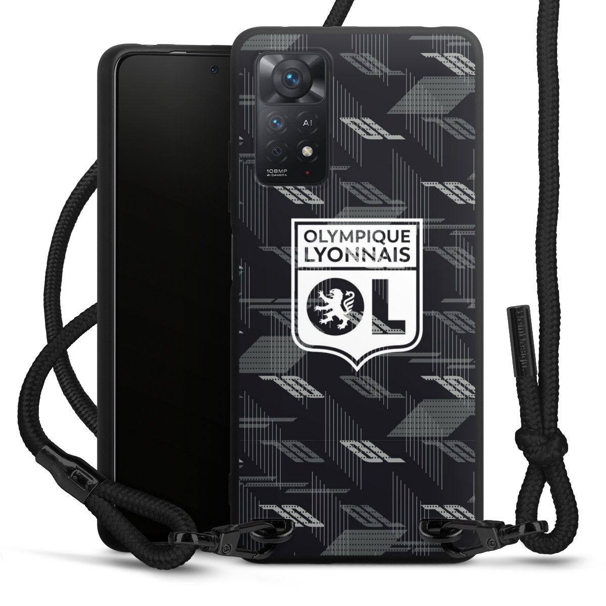 Pure Black: Phone case, fabric strap and metal details in stylish matt black.