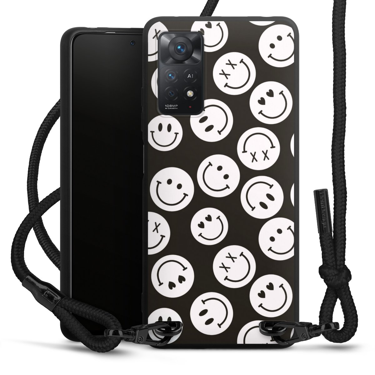 The matt black silicone case is made of flexible TPU (thermoplastic polyurethane) and offers robust protection. The durable, unbreakable material makes the cover flexible and dimensionally stable at the same time. The matte surface makes your design stand out more and is less susceptible to fingerprints and dirt. The stylish trend accessory fits comfortably in the hand and is perfectly complemented by the fabric (polyester) mobile phone strap. The braided fabric strap is approx. 1.70 metres long with a diameter of approx. 0.5 cm. Due to the special knotting technique, the length of the strap can be adjusted by simply pulling it, so that you can adapt it individually to your wishes. The practical case to wear around your neck is available with the fabric strap in black. As a little icing on the cake, we have provided the strap with a chic metal fastener in matt black. The strap is securely fastened to the case with loops made of high-quality genuine leather and press studs. The ends of the fabric strap are covered with metallic end caps and thus protected from fraying.