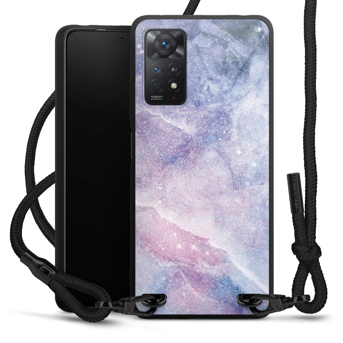 We use the solid direct print process for this phone case, which is why the print area only covers the back and the edge remains unprinted. The case to wear around your neck can be ordered unprinted, fully printed, or partially printed. For your design, either choose one of our exclusive shop motifs or get creative and create your own design, for example with photos and overlays. Design your own personal trend accessory and make an individual statement on the streets!