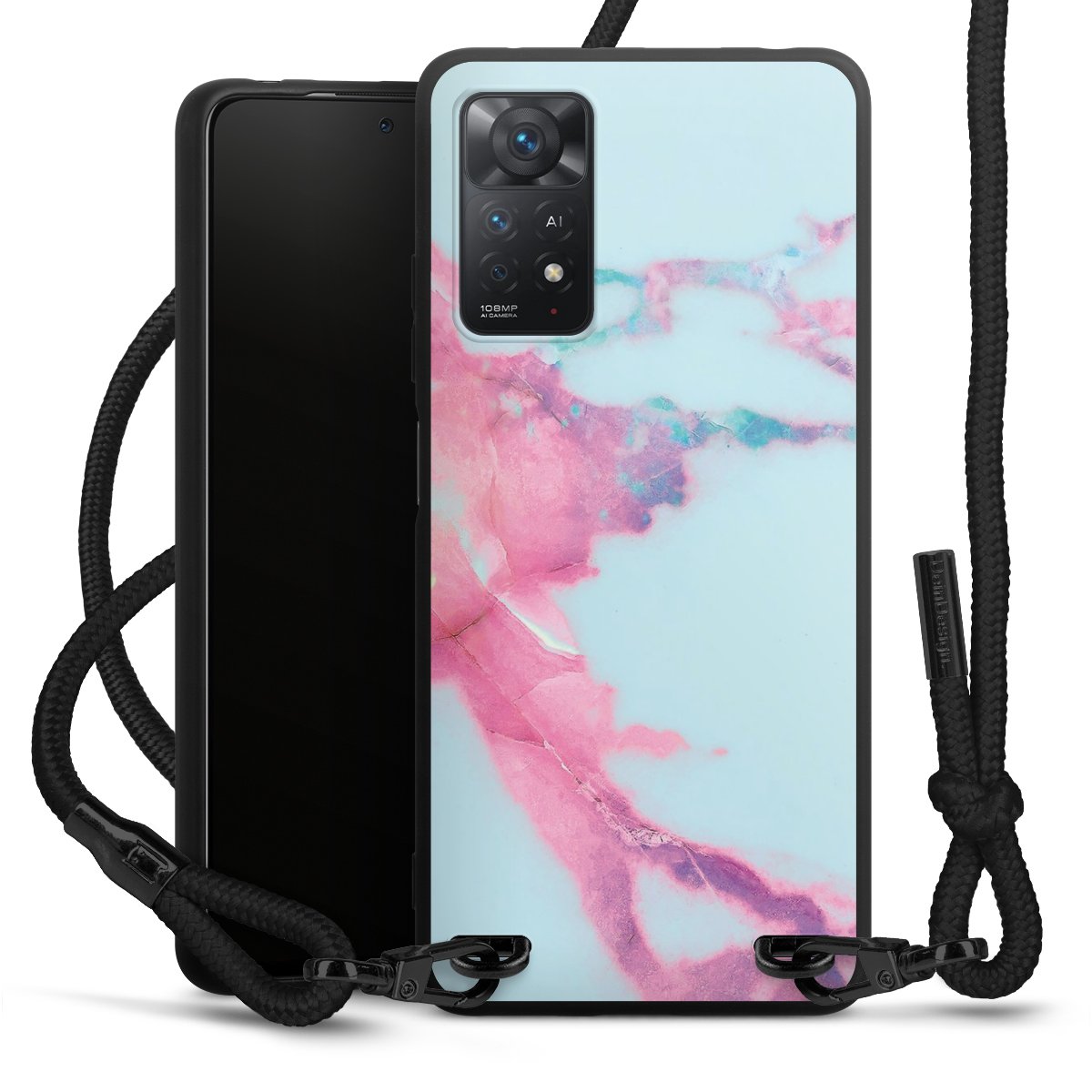We use the solid direct print process for this phone case, which is why the print area only covers the back and the edge remains unprinted. The case to wear around your neck can be ordered unprinted, fully printed, or partially printed. For your design, either choose one of our exclusive shop motifs or get creative and create your own design, for example with photos and overlays. Design your own personal trend accessory and make an individual statement on the streets!