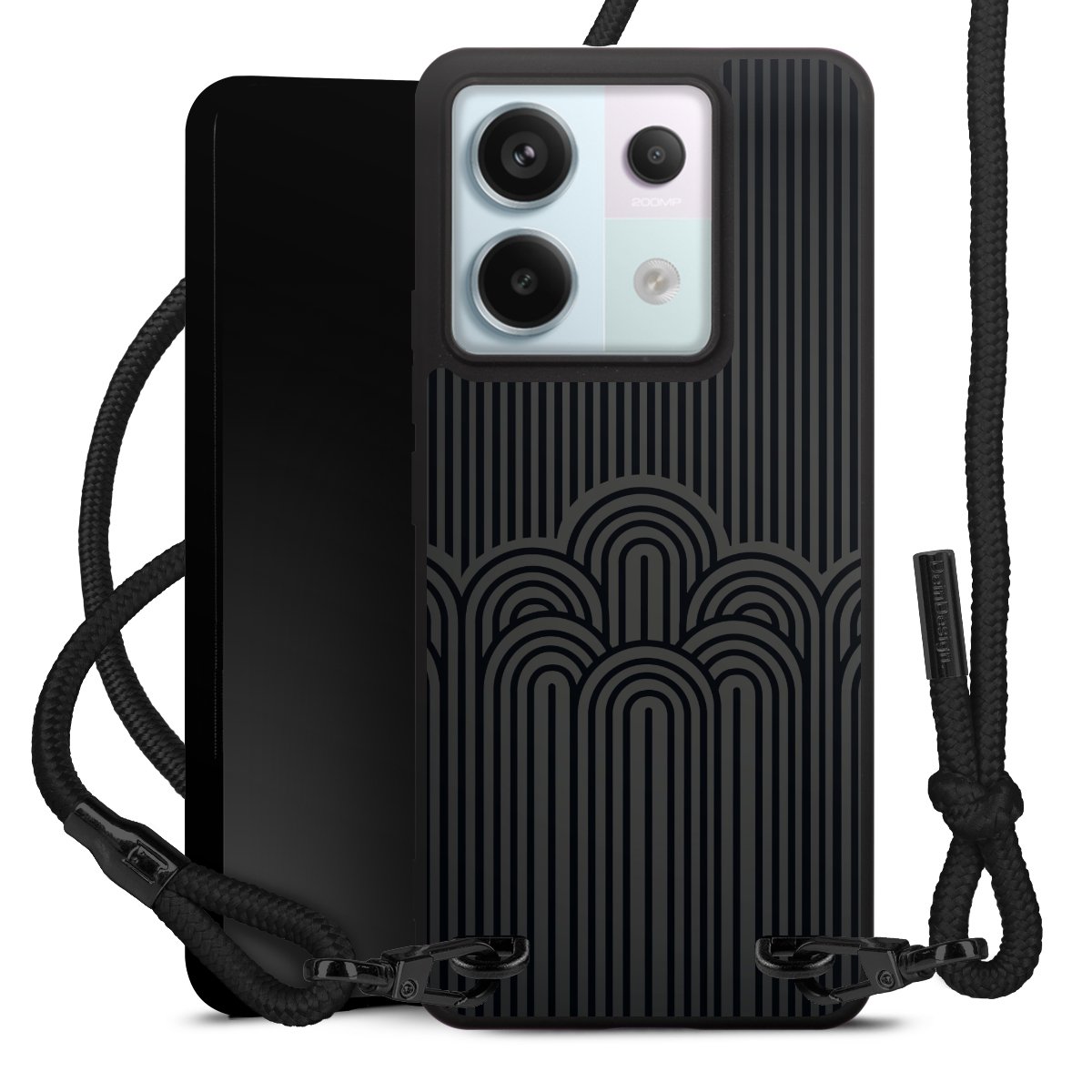 The matt black silicone case is made of flexible TPU (thermoplastic polyurethane) and offers robust protection. The durable, unbreakable material makes the cover flexible and dimensionally stable at the same time. The matte surface makes your design stand out more and is less susceptible to fingerprints and dirt. The stylish trend accessory fits comfortably in the hand and is perfectly complemented by the fabric (polyester) mobile phone strap. The braided fabric strap is approx. 1.70 metres long with a diameter of approx. 0.5 cm. Due to the special knotting technique, the length of the strap can be adjusted by simply pulling it, so that you can adapt it individually to your wishes. The practical case to wear around your neck is available with the fabric strap in black. As a little icing on the cake, we have provided the strap with a chic metal fastener in matt black. The strap is securely fastened to the case with loops made of high-quality genuine leather and press studs. The ends of the fabric strap are covered with metallic end caps and thus protected from fraying.
