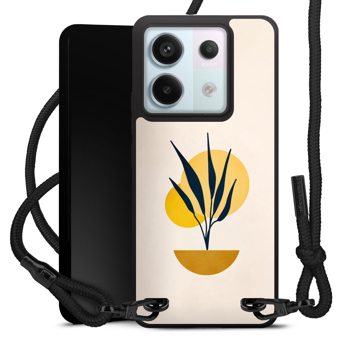 The matt black silicone case is made of flexible TPU (thermoplastic polyurethane) and offers robust protection. The durable, unbreakable material makes the cover flexible and dimensionally stable at the same time. The matte surface makes your design stand out more and is less susceptible to fingerprints and dirt. The stylish trend accessory fits comfortably in the hand and is perfectly complemented by the fabric (polyester) mobile phone strap. The braided fabric strap is approx. 1.70 metres long with a diameter of approx. 0.5 cm. Due to the special knotting technique, the length of the strap can be adjusted by simply pulling it, so that you can adapt it individually to your wishes. The practical case to wear around your neck is available with the fabric strap in black. As a little icing on the cake, we have provided the strap with a chic metal fastener in matt black. The strap is securely fastened to the case with loops made of high-quality genuine leather and press studs. The ends of the fabric strap are covered with metallic end caps and thus protected from fraying.