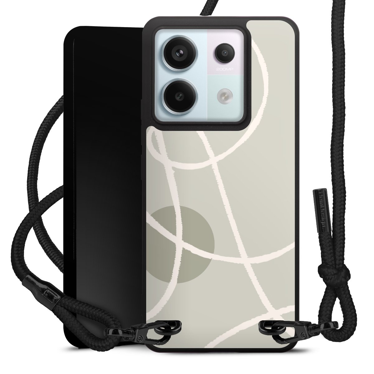 The matt black silicone case is made of flexible TPU (thermoplastic polyurethane) and offers robust protection. The durable, unbreakable material makes the cover flexible and dimensionally stable at the same time. The matte surface makes your design stand out more and is less susceptible to fingerprints and dirt. The stylish trend accessory fits comfortably in the hand and is perfectly complemented by the fabric (polyester) mobile phone strap. The braided fabric strap is approx. 1.70 metres long with a diameter of approx. 0.5 cm. Due to the special knotting technique, the length of the strap can be adjusted by simply pulling it, so that you can adapt it individually to your wishes. The practical case to wear around your neck is available with the fabric strap in black. As a little icing on the cake, we have provided the strap with a chic metal fastener in matt black. The strap is securely fastened to the case with loops made of high-quality genuine leather and press studs. The ends of the fabric strap are covered with metallic end caps and thus protected from fraying.