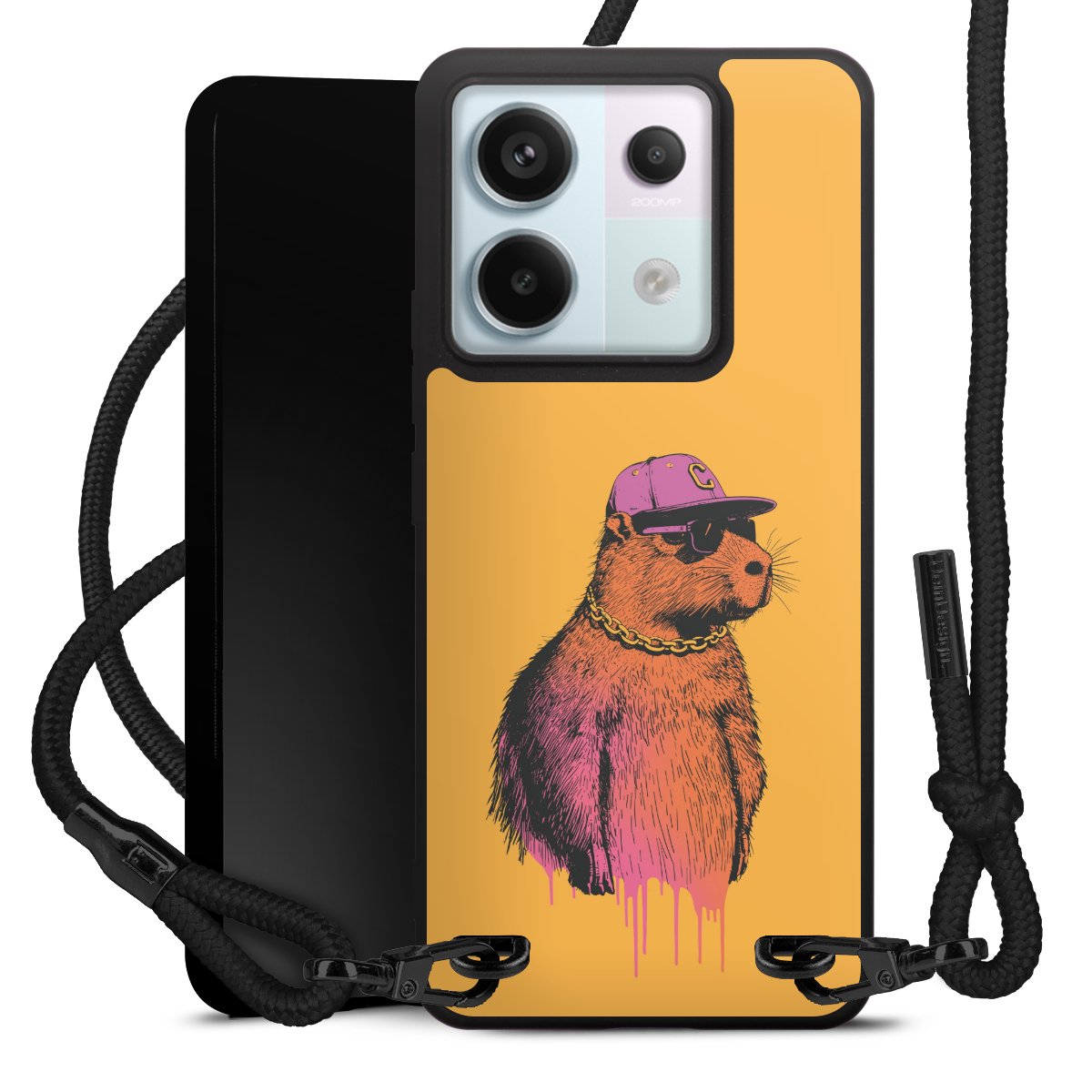 We use the solid direct print process for this phone case, which is why the print area only covers the back and the edge remains unprinted. The case to wear around your neck can be ordered unprinted, fully printed, or partially printed. For your design, either choose one of our exclusive shop motifs or get creative and create your own design, for example with photos and overlays. Design your own personal trend accessory and make an individual statement on the streets!