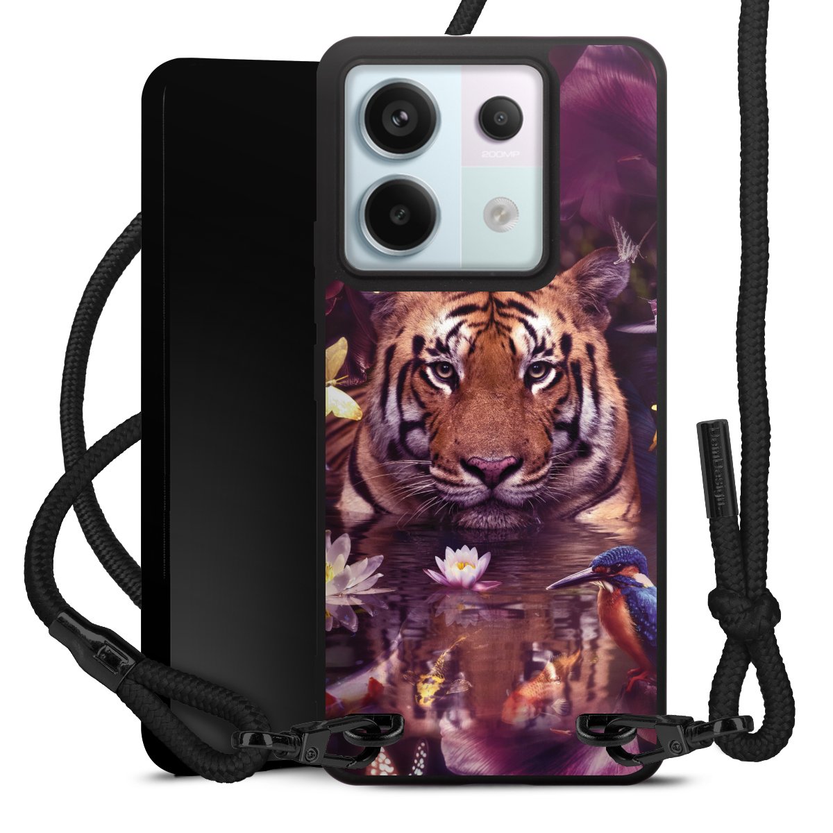 The matt black silicone case is made of flexible TPU (thermoplastic polyurethane) and offers robust protection. The durable, unbreakable material makes the cover flexible and dimensionally stable at the same time. The matte surface makes your design stand out more and is less susceptible to fingerprints and dirt. The stylish trend accessory fits comfortably in the hand and is perfectly complemented by the fabric (polyester) mobile phone strap. The braided fabric strap is approx. 1.70 metres long with a diameter of approx. 0.5 cm. Due to the special knotting technique, the length of the strap can be adjusted by simply pulling it, so that you can adapt it individually to your wishes. The practical case to wear around your neck is available with the fabric strap in black. As a little icing on the cake, we have provided the strap with a chic metal fastener in matt black. The strap is securely fastened to the case with loops made of high-quality genuine leather and press studs. The ends of the fabric strap are covered with metallic end caps and thus protected from fraying.