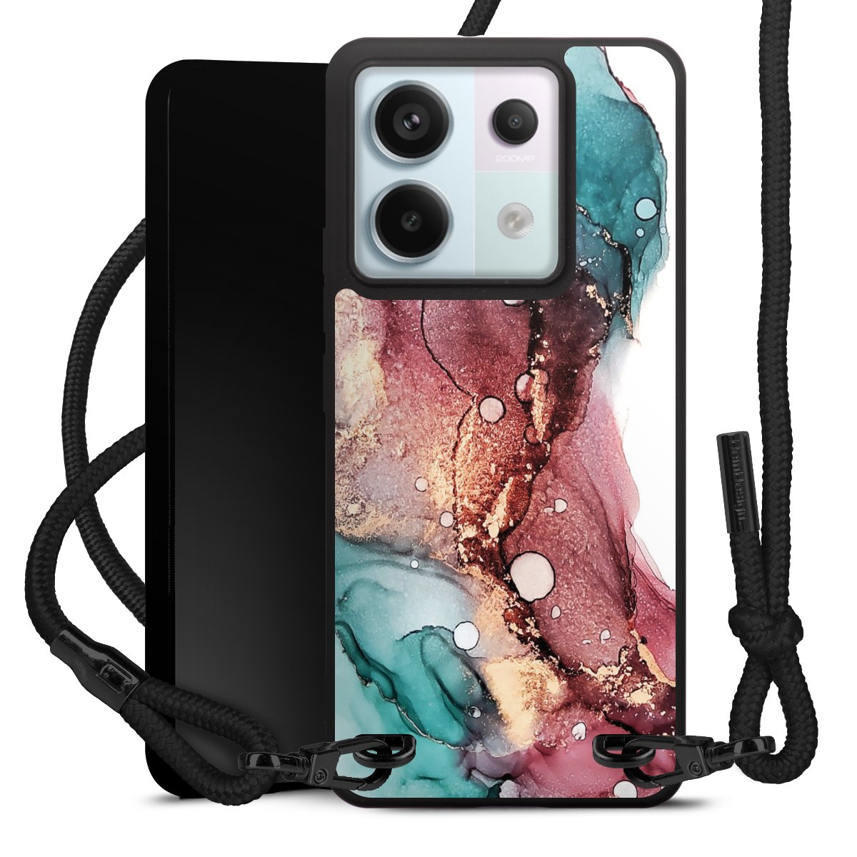We use the solid direct print process for this phone case, which is why the print area only covers the back and the edge remains unprinted. The case to wear around your neck can be ordered unprinted, fully printed, or partially printed. For your design, either choose one of our exclusive shop motifs or get creative and create your own design, for example with photos and overlays. Design your own personal trend accessory and make an individual statement on the streets!