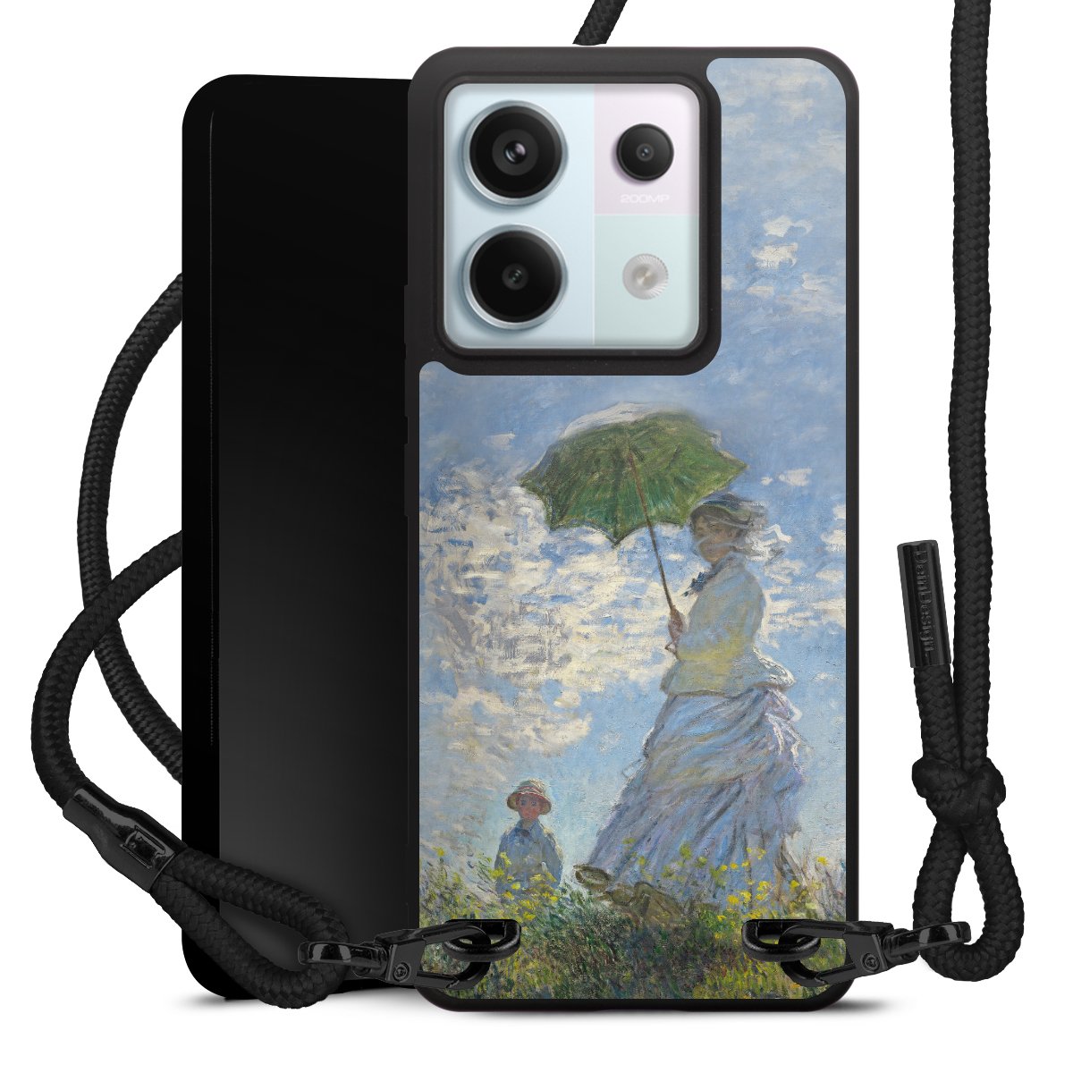 Pure Black: Phone case, fabric strap and metal details in stylish matt black.