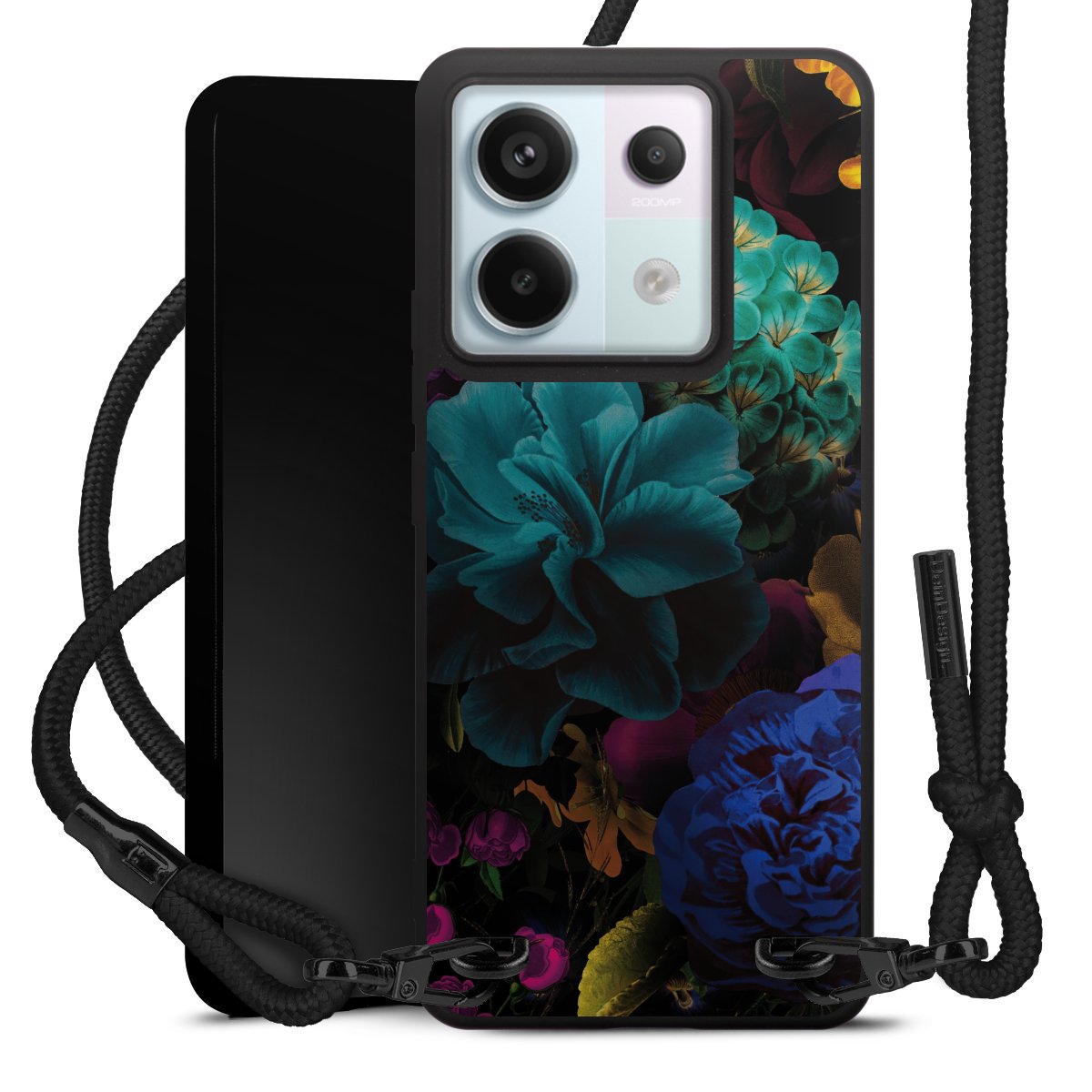 The matt black silicone case is made of flexible TPU (thermoplastic polyurethane) and offers robust protection. The durable, unbreakable material makes the cover flexible and dimensionally stable at the same time. The matte surface makes your design stand out more and is less susceptible to fingerprints and dirt. The stylish trend accessory fits comfortably in the hand and is perfectly complemented by the fabric (polyester) mobile phone strap. The braided fabric strap is approx. 1.70 metres long with a diameter of approx. 0.5 cm. Due to the special knotting technique, the length of the strap can be adjusted by simply pulling it, so that you can adapt it individually to your wishes. The practical case to wear around your neck is available with the fabric strap in black. As a little icing on the cake, we have provided the strap with a chic metal fastener in matt black. The strap is securely fastened to the case with loops made of high-quality genuine leather and press studs. The ends of the fabric strap are covered with metallic end caps and thus protected from fraying.