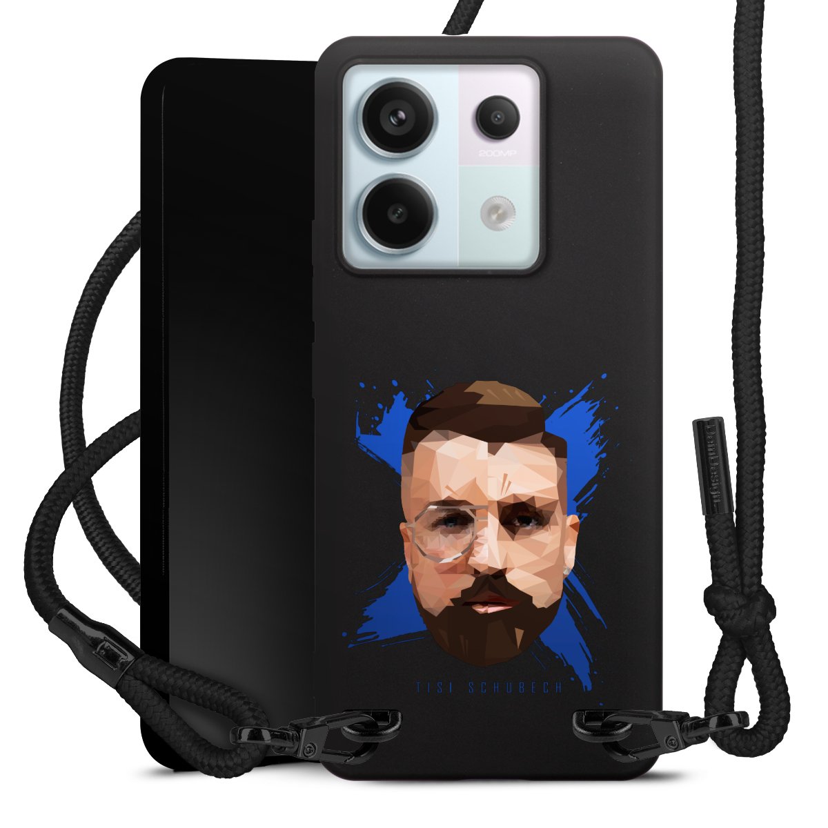 The matt black silicone case is made of flexible TPU (thermoplastic polyurethane) and offers robust protection. The durable, unbreakable material makes the cover flexible and dimensionally stable at the same time. The matte surface makes your design stand out more and is less susceptible to fingerprints and dirt. The stylish trend accessory fits comfortably in the hand and is perfectly complemented by the fabric (polyester) mobile phone strap. The braided fabric strap is approx. 1.70 metres long with a diameter of approx. 0.5 cm. Due to the special knotting technique, the length of the strap can be adjusted by simply pulling it, so that you can adapt it individually to your wishes. The practical case to wear around your neck is available with the fabric strap in black. As a little icing on the cake, we have provided the strap with a chic metal fastener in matt black. The strap is securely fastened to the case with loops made of high-quality genuine leather and press studs. The ends of the fabric strap are covered with metallic end caps and thus protected from fraying.