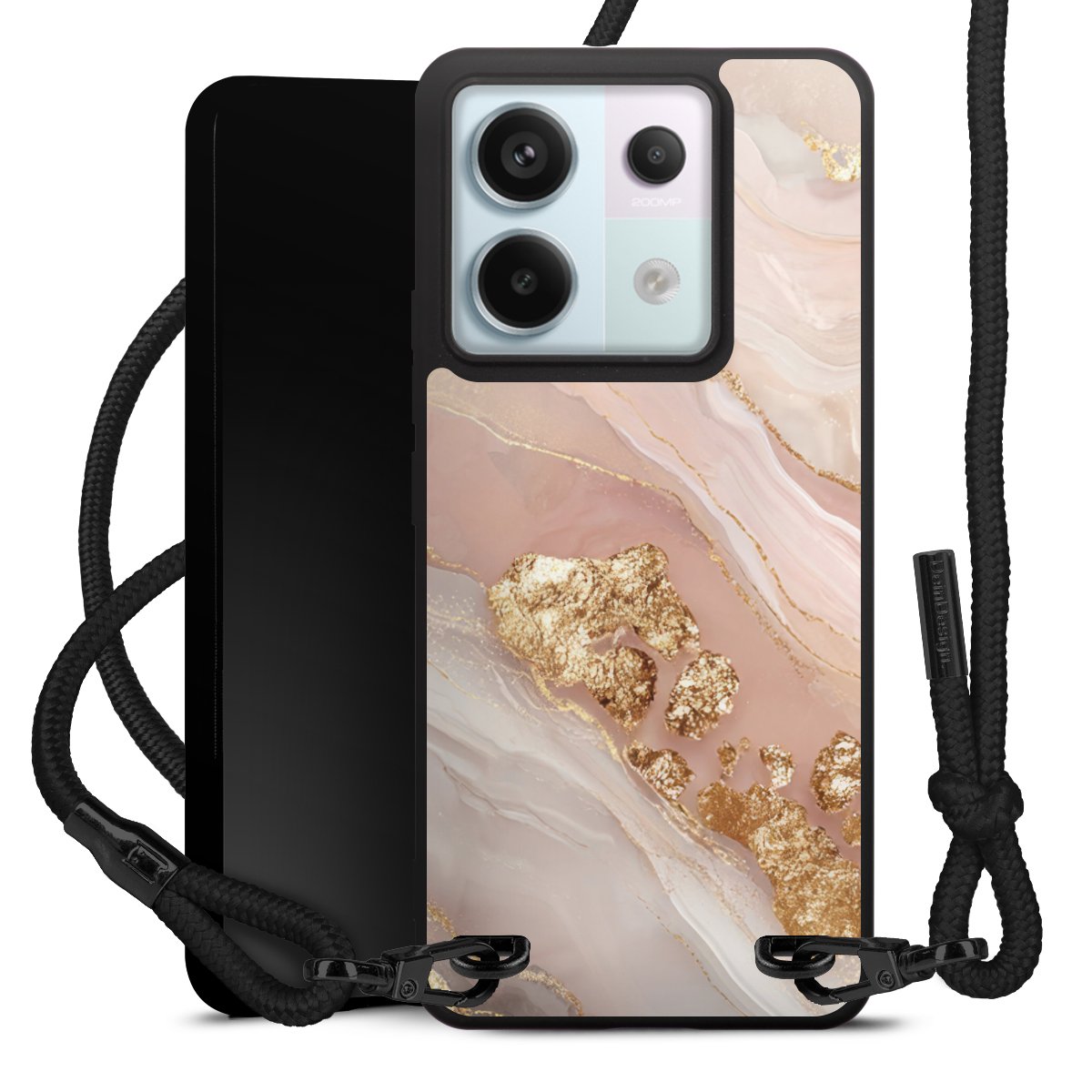 The matt black silicone case is made of flexible TPU (thermoplastic polyurethane) and offers robust protection. The durable, unbreakable material makes the cover flexible and dimensionally stable at the same time. The matte surface makes your design stand out more and is less susceptible to fingerprints and dirt. The stylish trend accessory fits comfortably in the hand and is perfectly complemented by the fabric (polyester) mobile phone strap. The braided fabric strap is approx. 1.70 metres long with a diameter of approx. 0.5 cm. Due to the special knotting technique, the length of the strap can be adjusted by simply pulling it, so that you can adapt it individually to your wishes. The practical case to wear around your neck is available with the fabric strap in black. As a little icing on the cake, we have provided the strap with a chic metal fastener in matt black. The strap is securely fastened to the case with loops made of high-quality genuine leather and press studs. The ends of the fabric strap are covered with metallic end caps and thus protected from fraying.