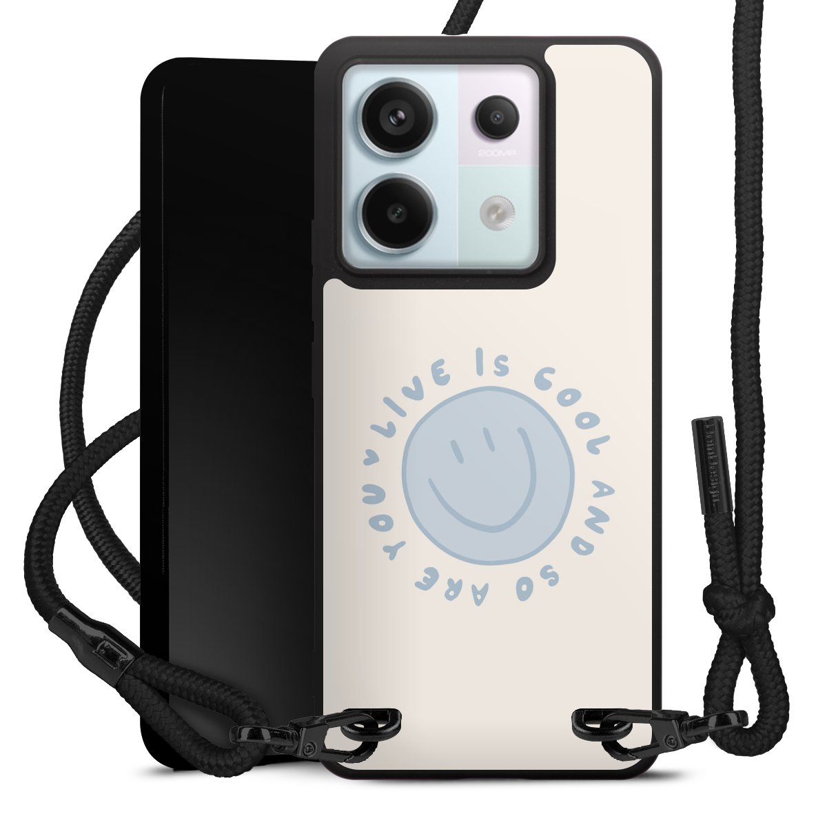 We use the solid direct print process for this phone case, which is why the print area only covers the back and the edge remains unprinted. The case to wear around your neck can be ordered unprinted, fully printed, or partially printed. For your design, either choose one of our exclusive shop motifs or get creative and create your own design, for example with photos and overlays. Design your own personal trend accessory and make an individual statement on the streets!