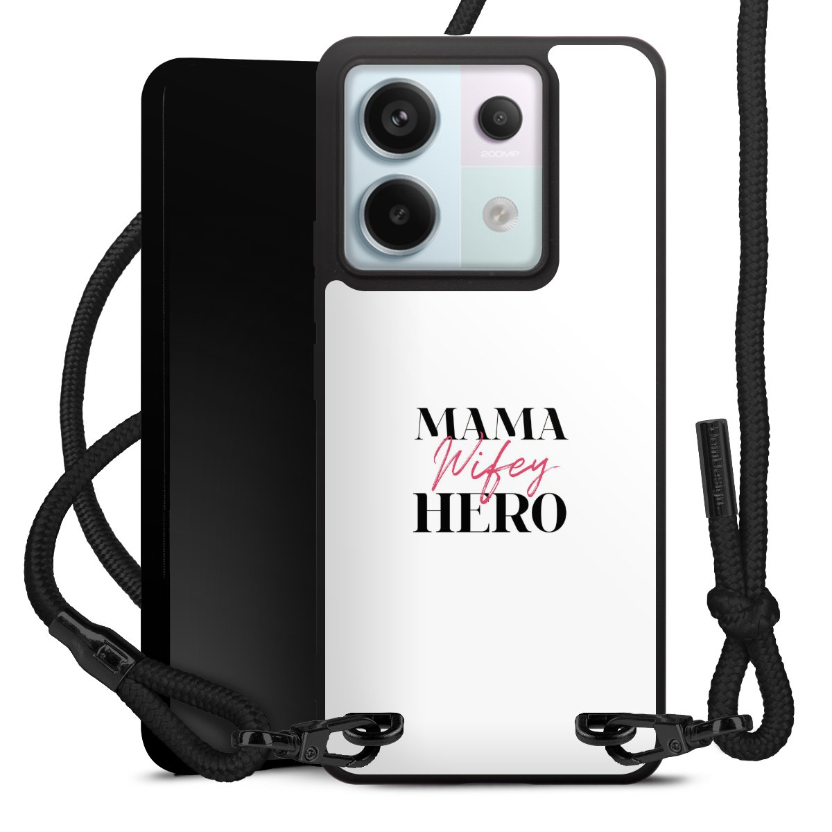 The matt black silicone case is made of flexible TPU (thermoplastic polyurethane) and offers robust protection. The durable, unbreakable material makes the cover flexible and dimensionally stable at the same time. The matte surface makes your design stand out more and is less susceptible to fingerprints and dirt. The stylish trend accessory fits comfortably in the hand and is perfectly complemented by the fabric (polyester) mobile phone strap. The braided fabric strap is approx. 1.70 metres long with a diameter of approx. 0.5 cm. Due to the special knotting technique, the length of the strap can be adjusted by simply pulling it, so that you can adapt it individually to your wishes. The practical case to wear around your neck is available with the fabric strap in black. As a little icing on the cake, we have provided the strap with a chic metal fastener in matt black. The strap is securely fastened to the case with loops made of high-quality genuine leather and press studs. The ends of the fabric strap are covered with metallic end caps and thus protected from fraying.