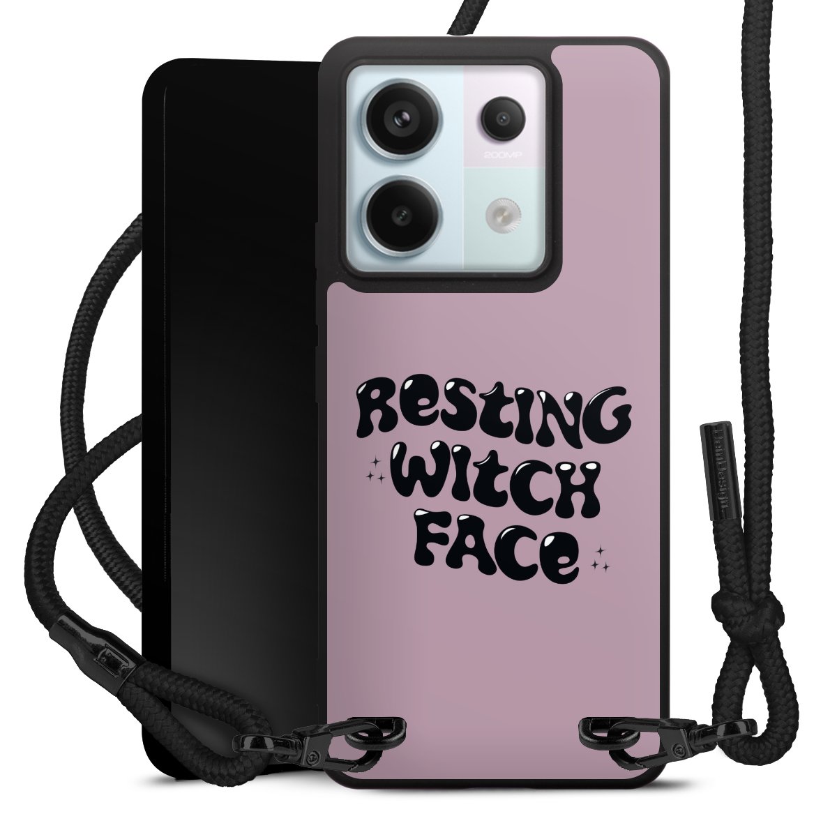 Pure Black: Phone case, fabric strap and metal details in stylish matt black.