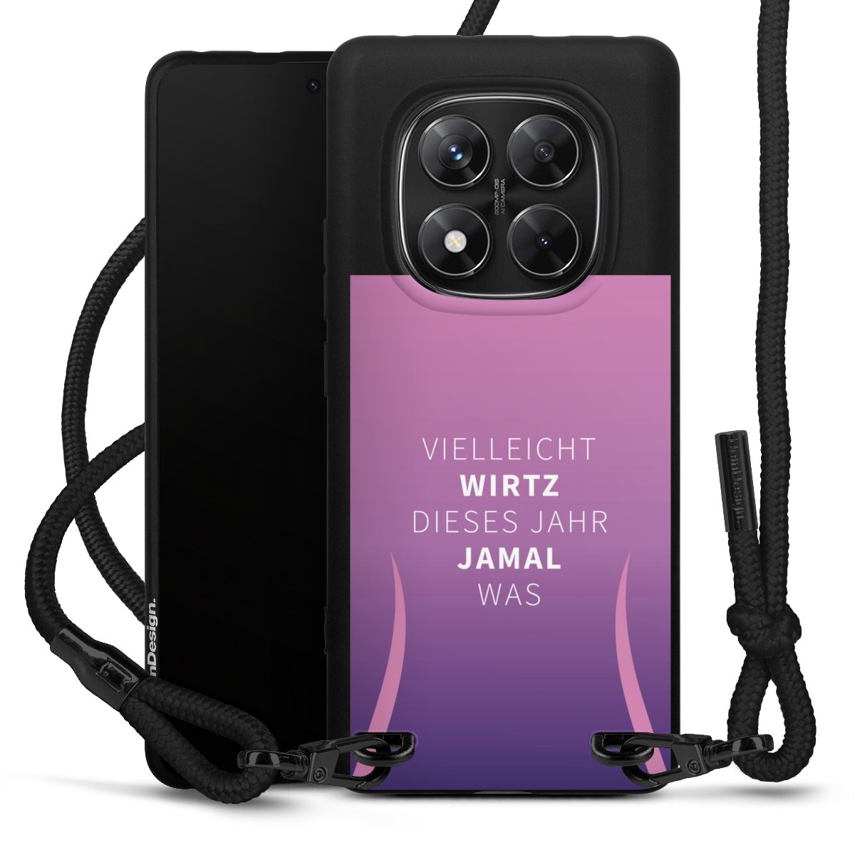 The matt black silicone case is made of flexible TPU (thermoplastic polyurethane) and offers robust protection. The durable, unbreakable material makes the cover flexible and dimensionally stable at the same time. The matte surface makes your design stand out more and is less susceptible to fingerprints and dirt. The stylish trend accessory fits comfortably in the hand and is perfectly complemented by the fabric (polyester) mobile phone strap. The braided fabric strap is approx. 1.70 metres long with a diameter of approx. 0.5 cm. Due to the special knotting technique, the length of the strap can be adjusted by simply pulling it, so that you can adapt it individually to your wishes. The practical case to wear around your neck is available with the fabric strap in black. As a little icing on the cake, we have provided the strap with a chic metal fastener in matt black. The strap is securely fastened to the case with loops made of high-quality genuine leather and press studs. The ends of the fabric strap are covered with metallic end caps and thus protected from fraying.