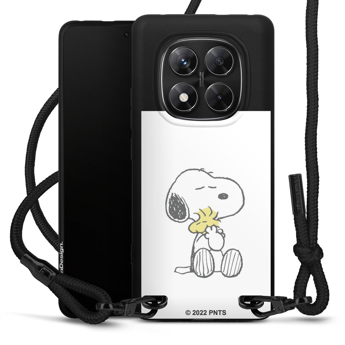 The matt black silicone case is made of flexible TPU (thermoplastic polyurethane) and offers robust protection. The durable, unbreakable material makes the cover flexible and dimensionally stable at the same time. The matte surface makes your design stand out more and is less susceptible to fingerprints and dirt. The stylish trend accessory fits comfortably in the hand and is perfectly complemented by the fabric (polyester) mobile phone strap. The braided fabric strap is approx. 1.70 metres long with a diameter of approx. 0.5 cm. Due to the special knotting technique, the length of the strap can be adjusted by simply pulling it, so that you can adapt it individually to your wishes. The practical case to wear around your neck is available with the fabric strap in black. As a little icing on the cake, we have provided the strap with a chic metal fastener in matt black. The strap is securely fastened to the case with loops made of high-quality genuine leather and press studs. The ends of the fabric strap are covered with metallic end caps and thus protected from fraying.