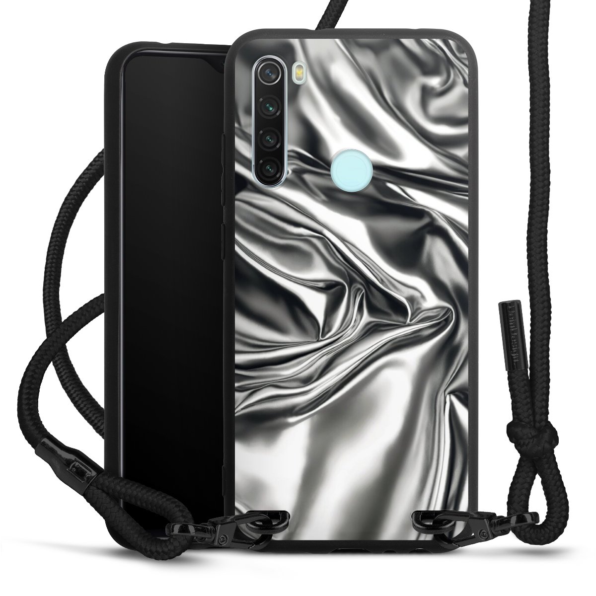 The matt black silicone case is made of flexible TPU (thermoplastic polyurethane) and offers robust protection. The durable, unbreakable material makes the cover flexible and dimensionally stable at the same time. The matte surface makes your design stand out more and is less susceptible to fingerprints and dirt. The stylish trend accessory fits comfortably in the hand and is perfectly complemented by the fabric (polyester) mobile phone strap. The braided fabric strap is approx. 1.70 metres long with a diameter of approx. 0.5 cm. Due to the special knotting technique, the length of the strap can be adjusted by simply pulling it, so that you can adapt it individually to your wishes. The practical case to wear around your neck is available with the fabric strap in black. As a little icing on the cake, we have provided the strap with a chic metal fastener in matt black. The strap is securely fastened to the case with loops made of high-quality genuine leather and press studs. The ends of the fabric strap are covered with metallic end caps and thus protected from fraying.