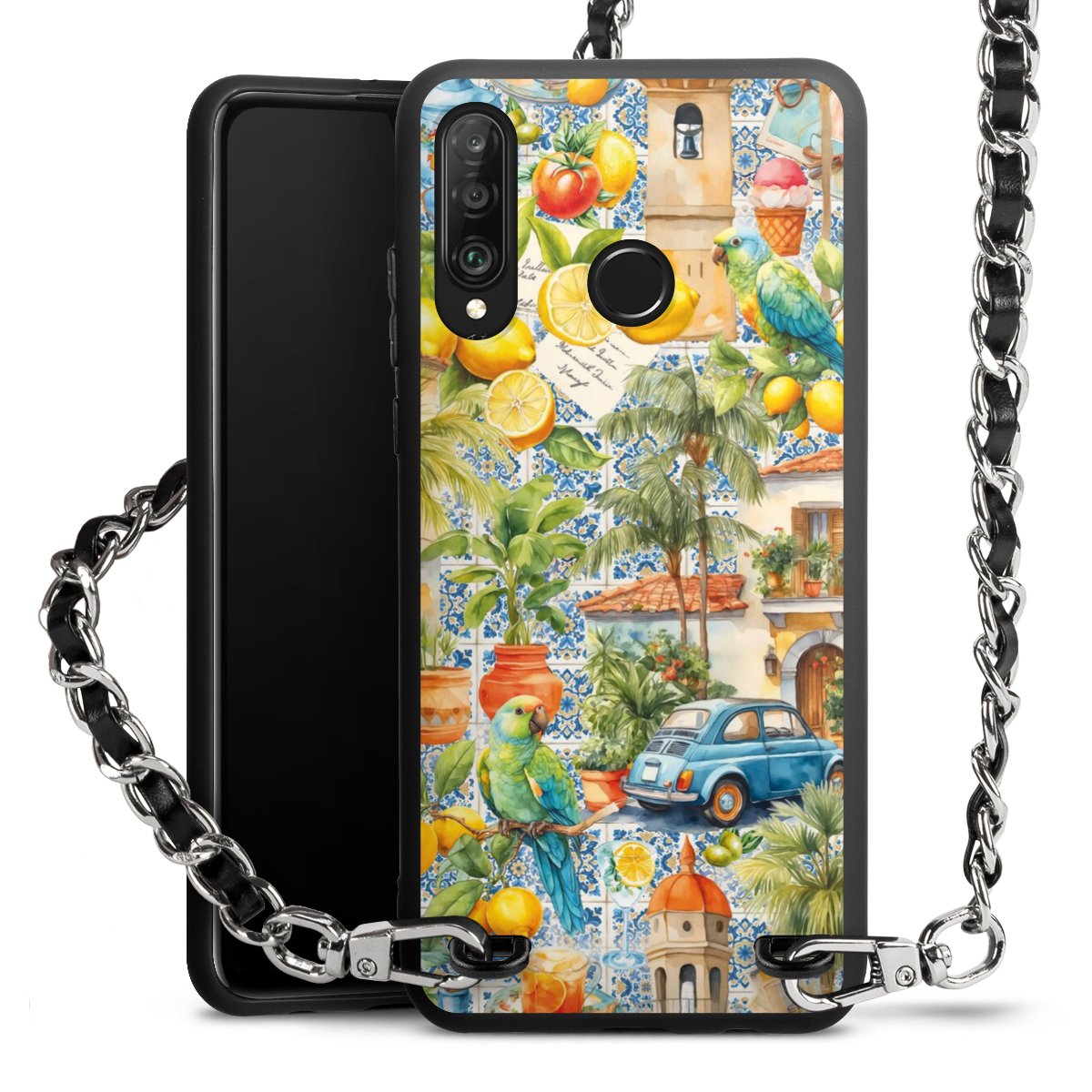 We use the solid direct print process for this phone case, which is why the print area only covers the back and the edge remains unprinted. The case to wear around your neck can be ordered unprinted, fully printed, or partially printed. For your design, either choose one of our exclusive shop motifs or get creative and create your own design, for example with photos and overlays. Design your own personal trend accessory and make an individual statement on the streets!