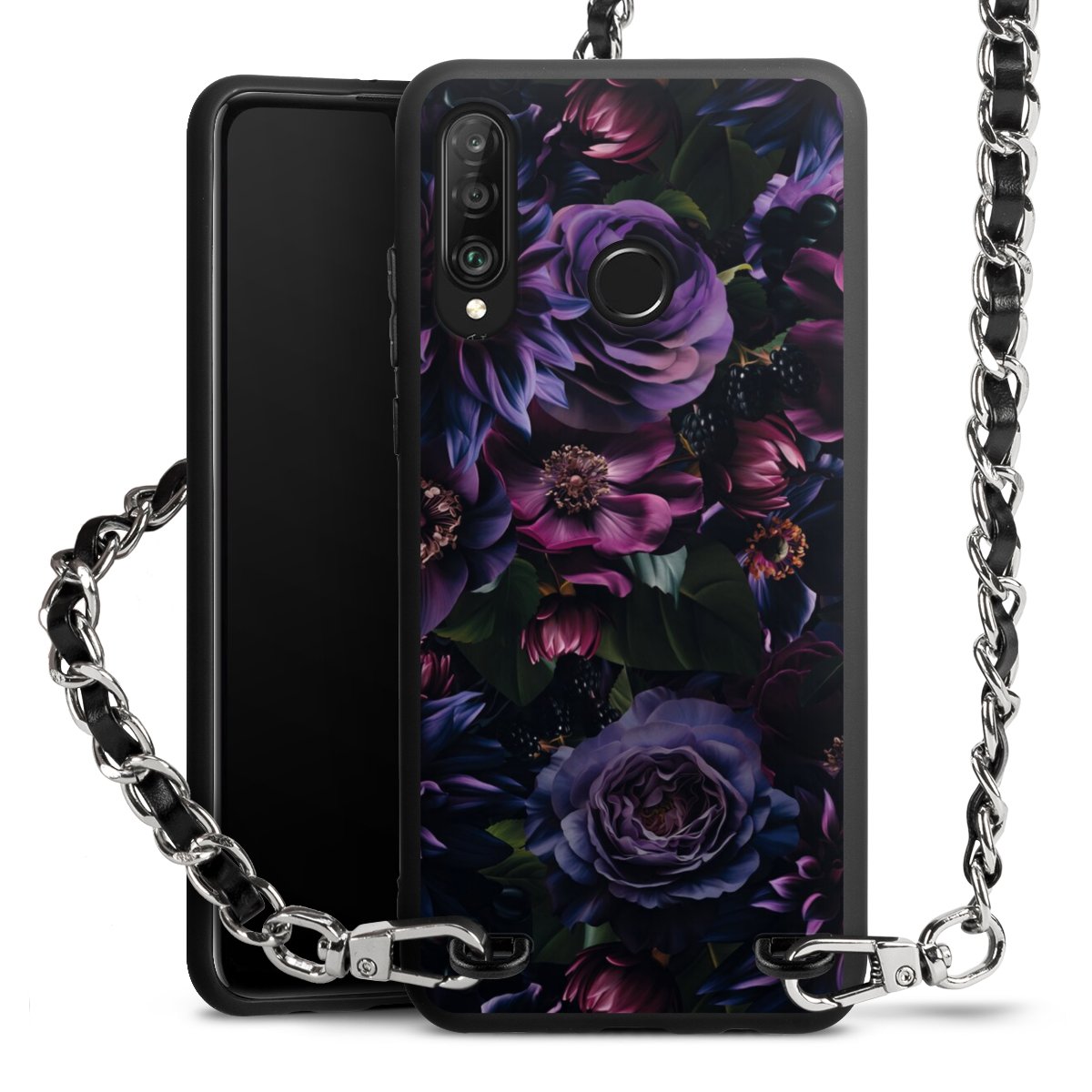 Pure Black: Phone case, fabric strap and metal details in stylish matt black.