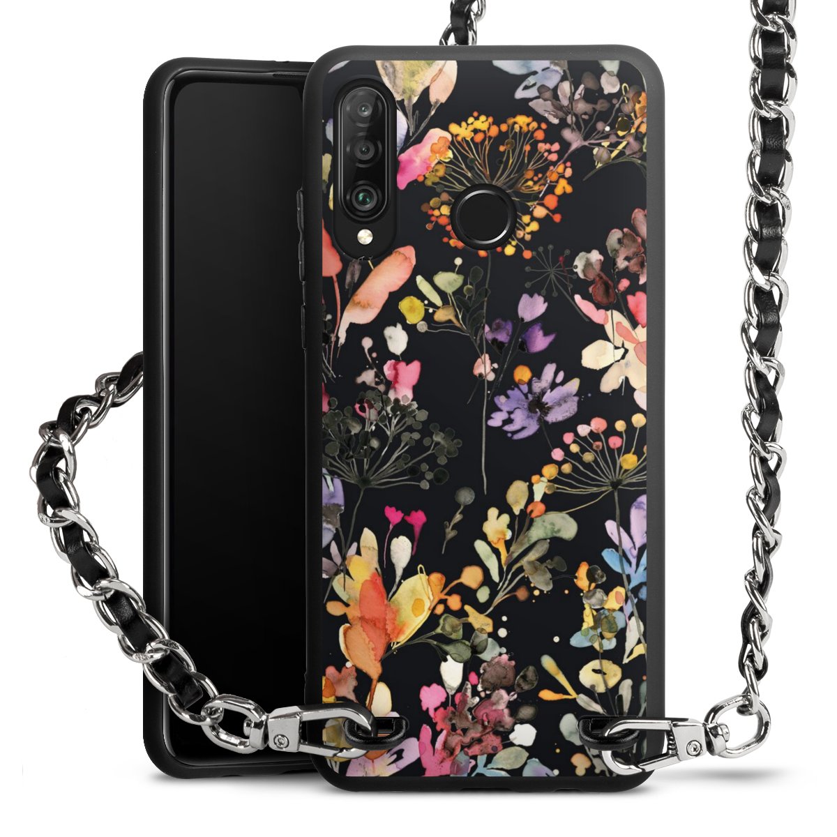 Pure Black: Phone case, fabric strap and metal details in stylish matt black.