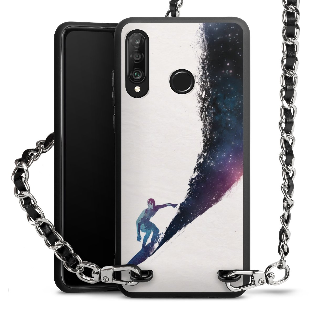 We use the solid direct print process for this phone case, which is why the print area only covers the back and the edge remains unprinted. The case to wear around your neck can be ordered unprinted, fully printed, or partially printed. For your design, either choose one of our exclusive shop motifs or get creative and create your own design, for example with photos and overlays. Design your own personal trend accessory and make an individual statement on the streets!