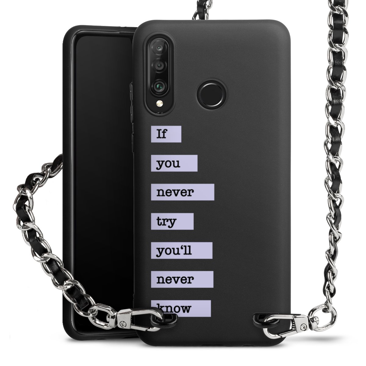 The matt black silicone case is made of flexible TPU (thermoplastic polyurethane) and offers robust protection. The durable, unbreakable material makes the cover flexible and dimensionally stable at the same time. The matte surface makes your design stand out more and is less susceptible to fingerprints and dirt. The stylish trend accessory fits comfortably in the hand. You can choose between three different straps for your Carry Case Black Line. The classic, simple fabric strap in matte black, the robust, lanyard or the trendy glamour strap with metal links - which suits your look better? In addition, the Carry Case Black Line is compatible with all DeinDesign Carry Case straps. Combine your accessories over and over again!