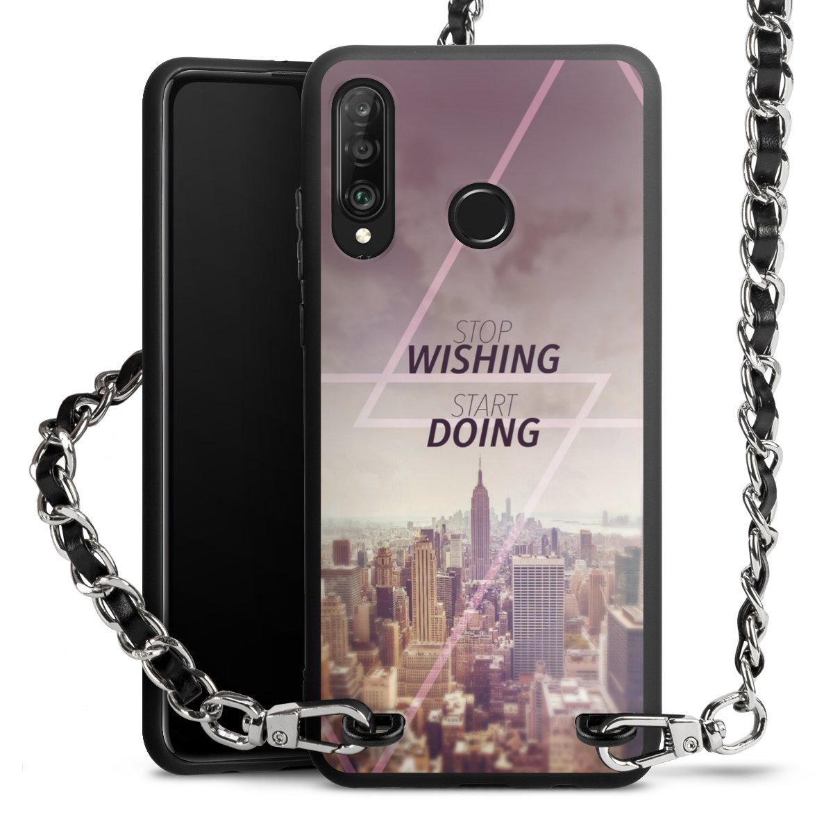 We use the solid direct print process for this phone case, which is why the print area only covers the back and the edge remains unprinted. The case to wear around your neck can be ordered unprinted, fully printed, or partially printed. For your design, either choose one of our exclusive shop motifs or get creative and create your own design, for example with photos and overlays. Design your own personal trend accessory and make an individual statement on the streets!
