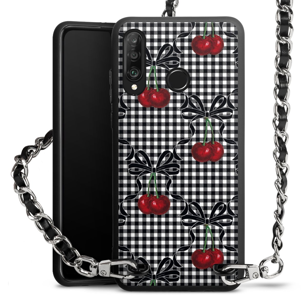 Pure Black: Phone case, fabric strap and metal details in stylish matt black.