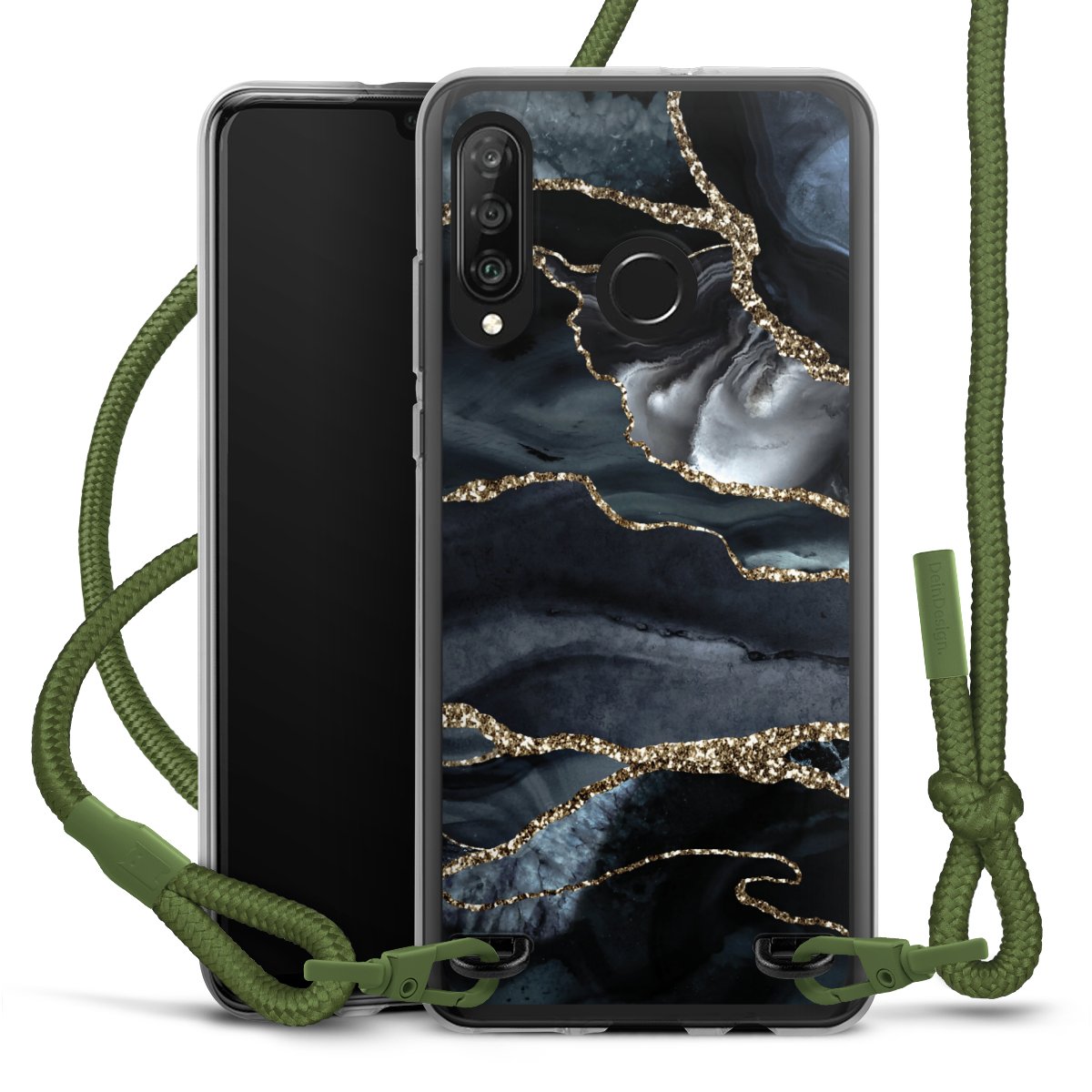 Dark Marble Gold Glitter Look
