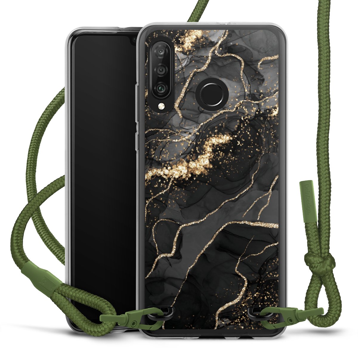 Dark Marble Swirls Gold Look