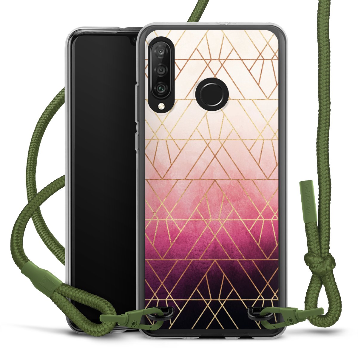 Pink Ombre Triangles Gold Print