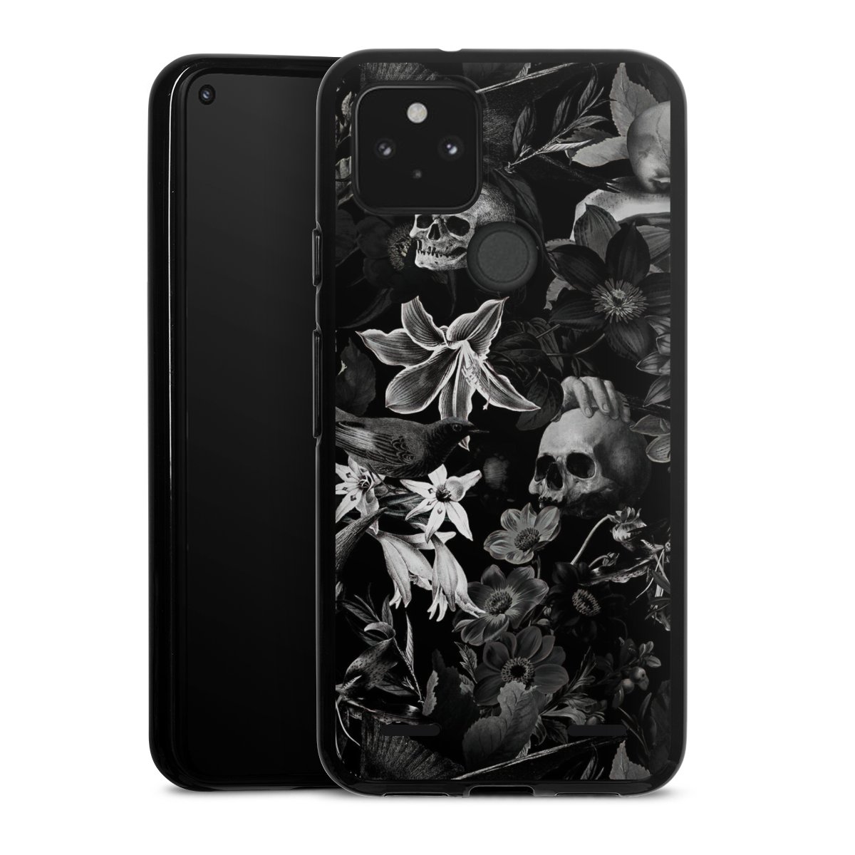 Skulls and Flowers on Black Background