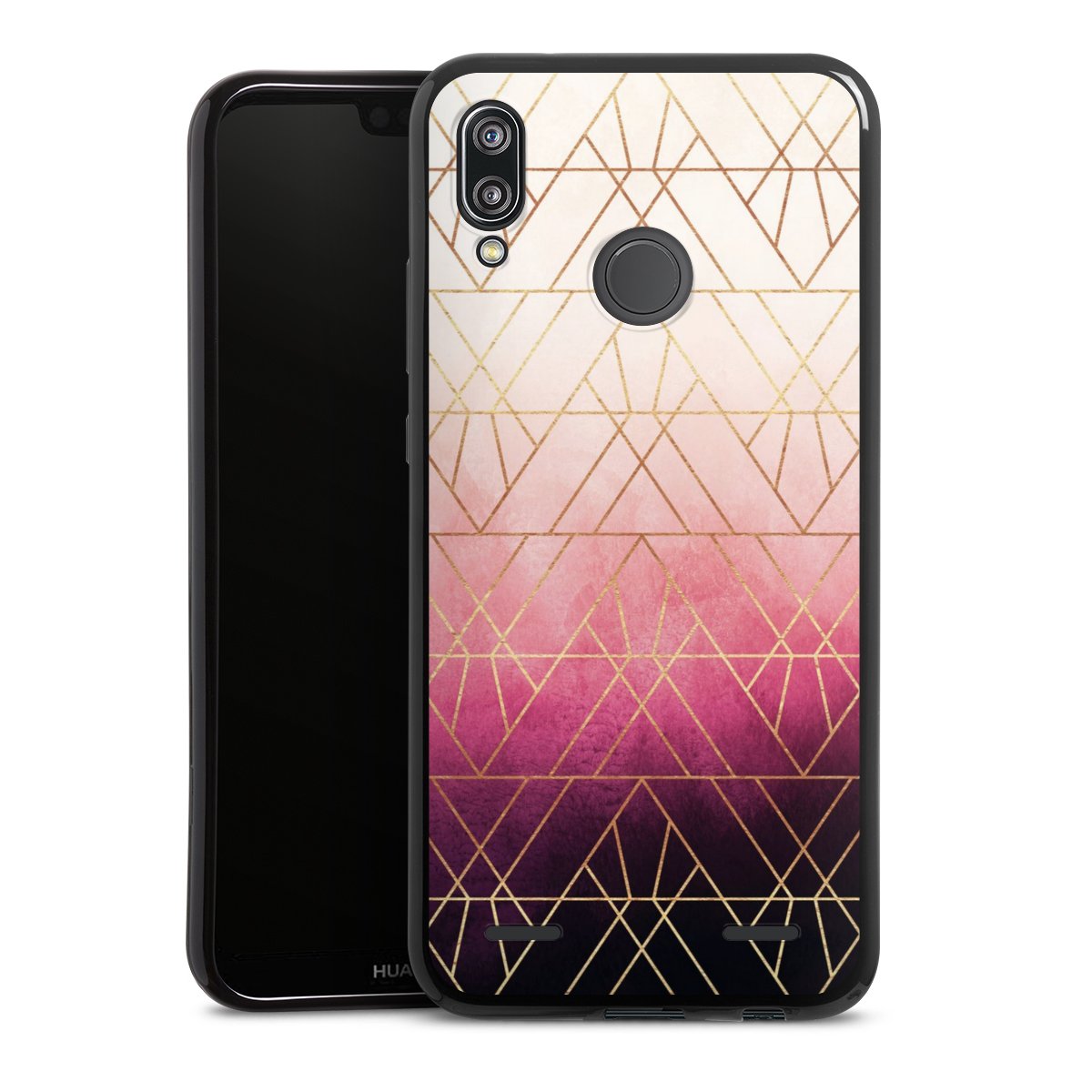 Pink Ombre Triangles Gold Print