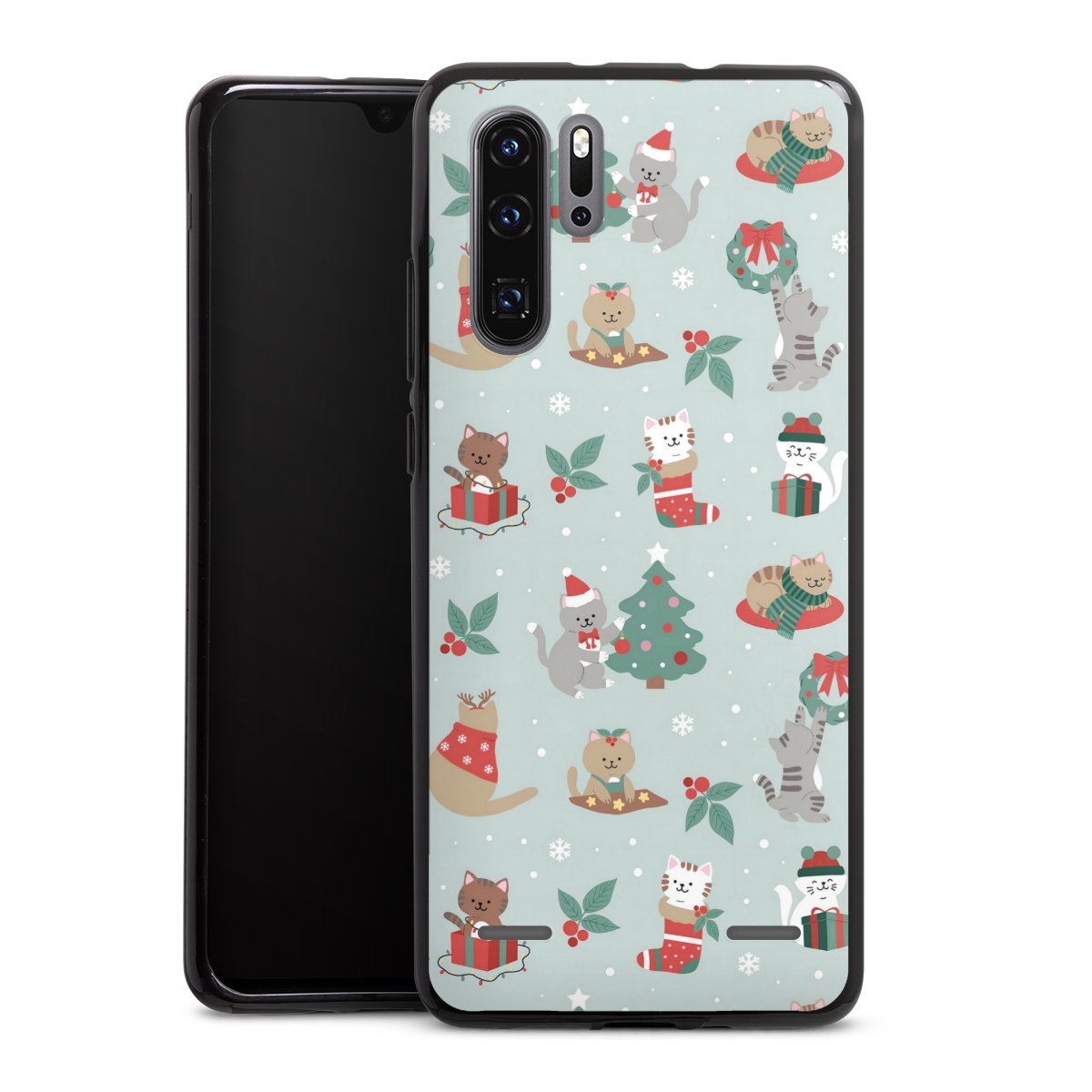 Cute Winter Wonderland Christmas Festive Cats on Teal